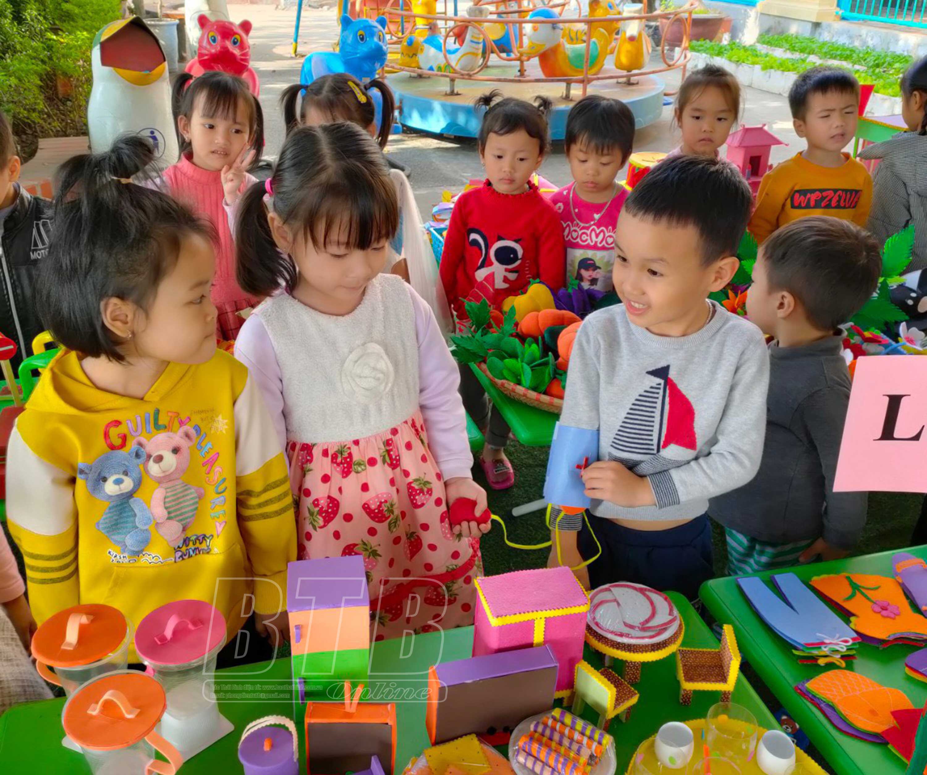 Buổi học trải nghiệm ngoài trời của học sinh Trường Mầm non Quang Trung.