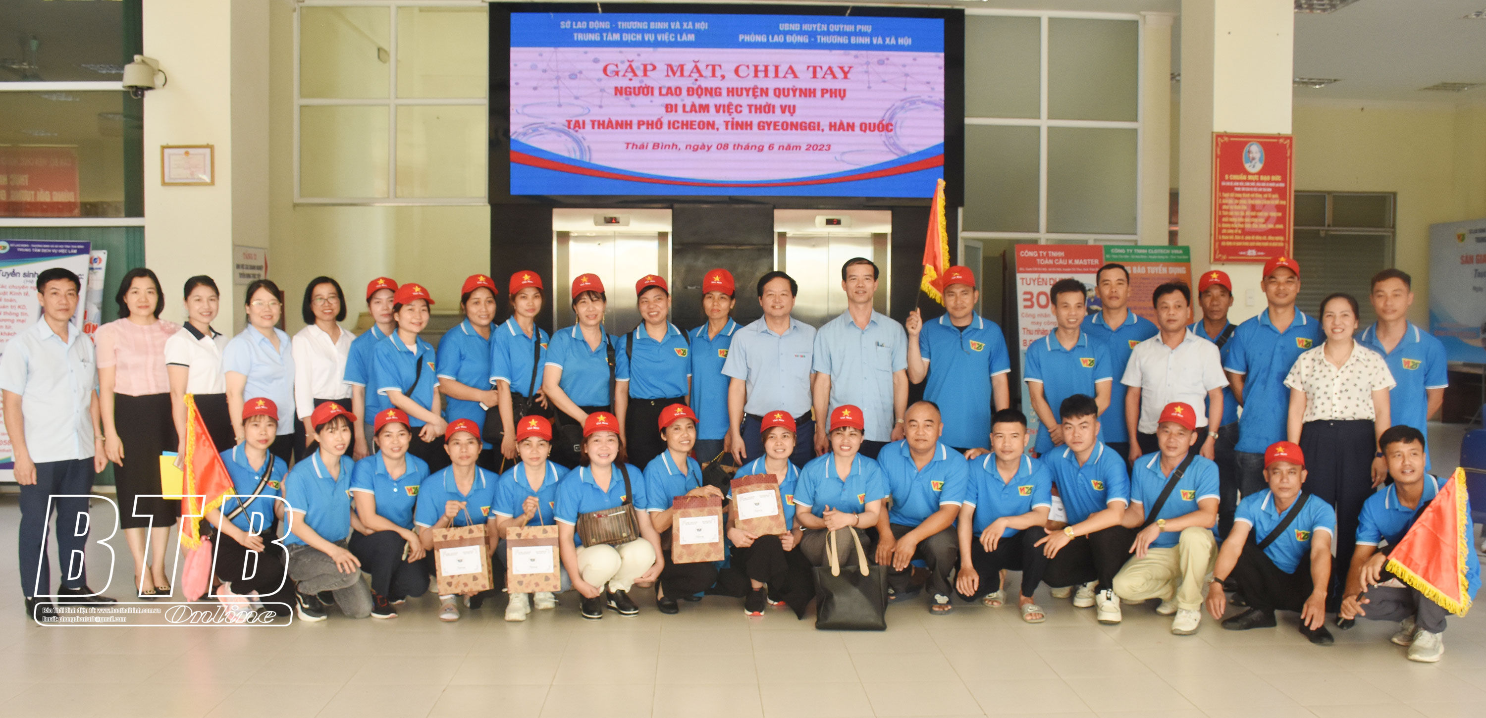 28 người lao động huyện Quỳnh Phụ gồm 12 lao động nam và 16 lao động nữ đi làm việc thời vụ tại Hàn Quốc (đợt 1) được thực hiện theo bản ghi nhớ và thỏa thuận hợp tác ngày 10/4/2023 giữa UBND huyện Quỳnh Phụ và chính quyền thành phố Icheon, tỉnh Gyeonggi (Hàn Quốc). Để có chuyến đi này, Trung tâm Dịch vụ việc làm Thái Bình đã phối hợp với huyện Quỳnh Phụ tuyển chọn người lao động. Việc tuyển chọn được diễn ra công khai, minh bạch theo đúng quy định. Đến nay, số người lao động được chủ sử dụng lao động Hàn Quốc lựa chọn ký hợp đồng là 37 người; trong đó, đợt 1 sẽ có 28 người xuất cảnh vào ngày 9/6; đợt 2 dự kiến sẽ có 9 người xuất cảnh vào tháng 8/2023.