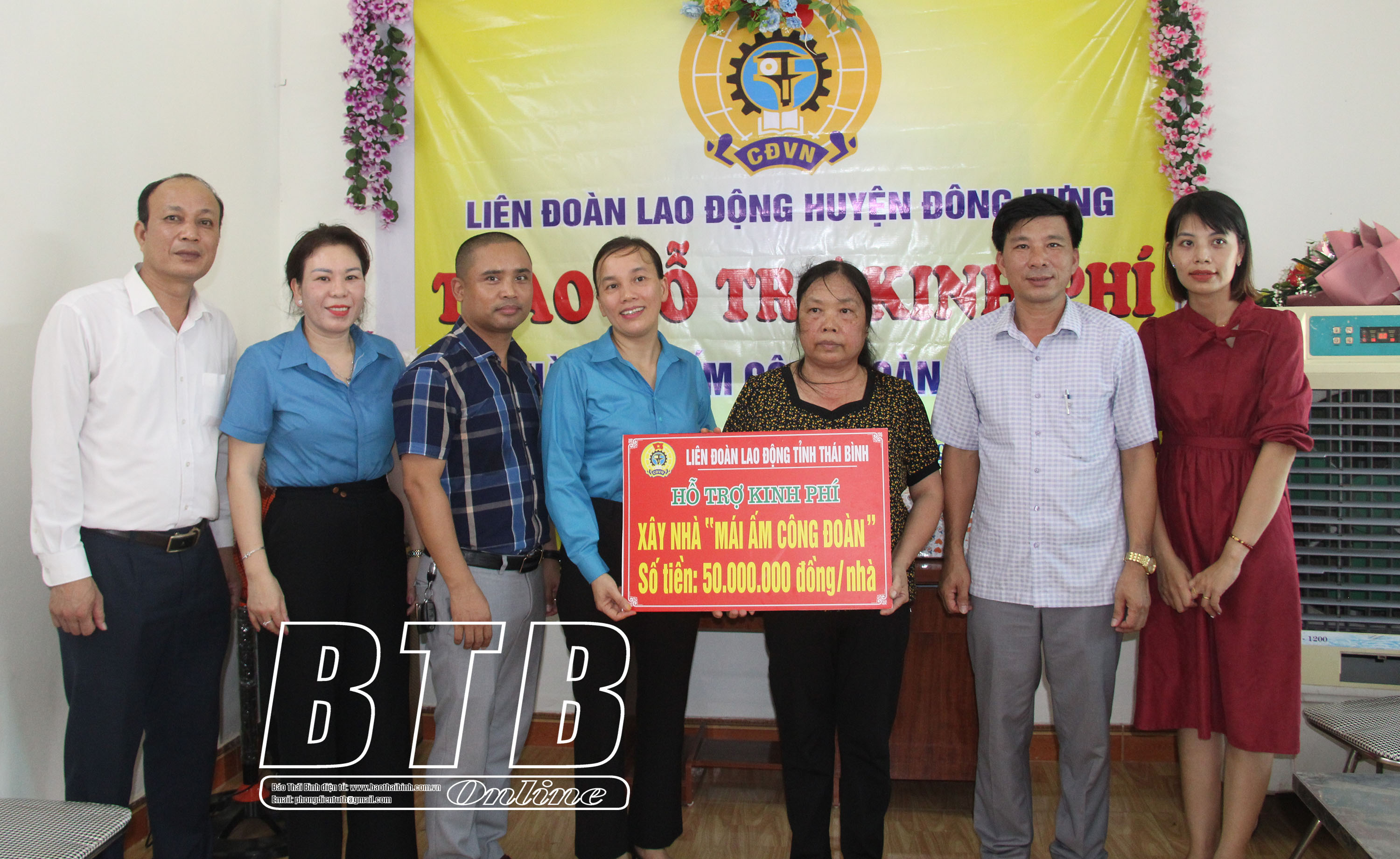 LĐLĐ huyện Đông Hưng: Trao kinh phí hỗ trợ xây dựng mái ấm công đoàn cho đoàn viên