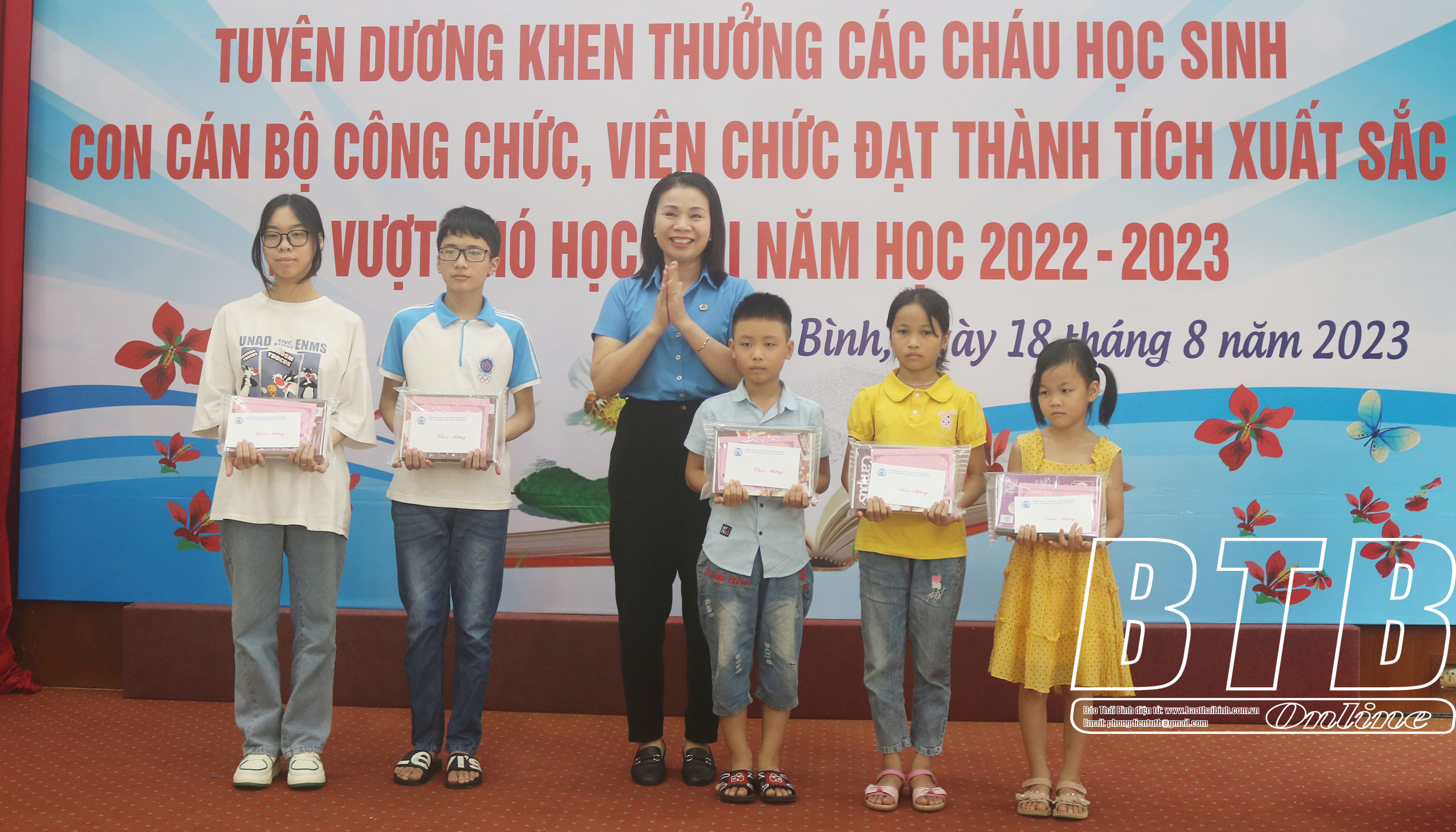 Tại hội nghị, 81 học sinh đạt danh hiệu học giỏi các cấp và vượt khó, học giỏi năm học 2022 - 2023 được Liên đoàn Lao động tỉnh, Công đoàn Viên chức tỉnh khen thưởng với tổng số tiền 32 triệu đồng. Đây là nguồn động viên để các cháu học sinh đạt thành tích cao hơn nữa trong năm học 2023 - 2024.