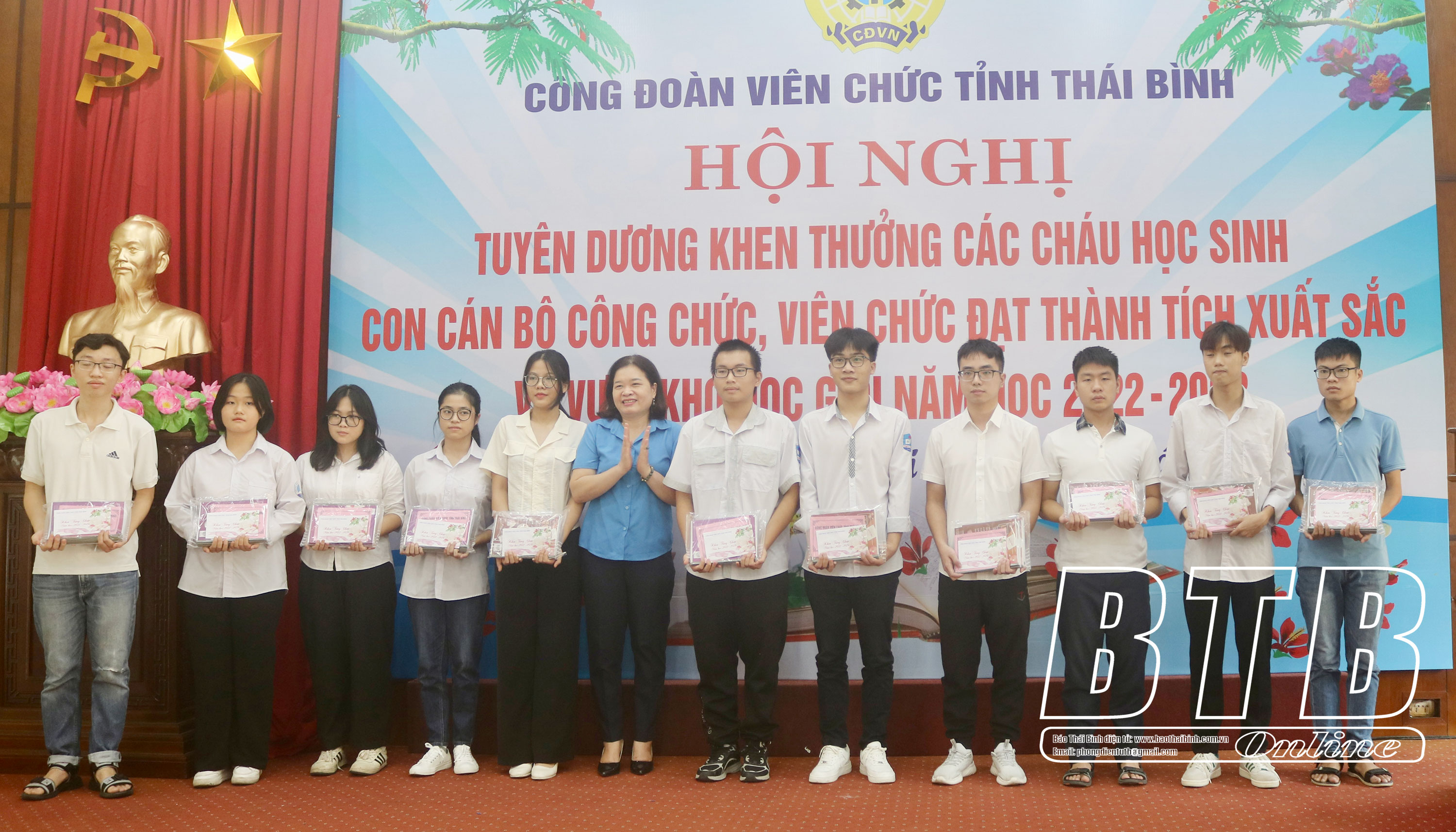 Năm học 2022 - 2023, Công đoàn Viên chức tỉnh có 2.851 cháu là con đoàn viên, cán bộ, công chức, viên chức đang học từ lớp 1 đến lớp 12. Kết thúc năm học có 195 cháu đạt học sinh tiên tiến, 2.497 cháu đạt học sinh giỏi cấp trường, 130 cháu đạt học sinh giỏi cấp huyện, thành phố; 26 cháu đạt danh hiệu học sinh giỏi cấp tỉnh và 3 cháu đạt học sinh giỏi cấp quốc gia. Trong số các cháu đạt học sinh giỏi các cấp có 52 cháu vượt khó học giỏi. Năm học vừa qua đã có 56 công đoàn cơ sở trực thuộc Công đoàn Viên chức tỉnh tổ chức gặp mặt, tặng quà động viên 2.850 cháu đạt danh hiệu học sinh giỏi các cấp và học sinh vượt khó học giỏi với tổng số tiền thưởng hơn 720 triệu đồng.