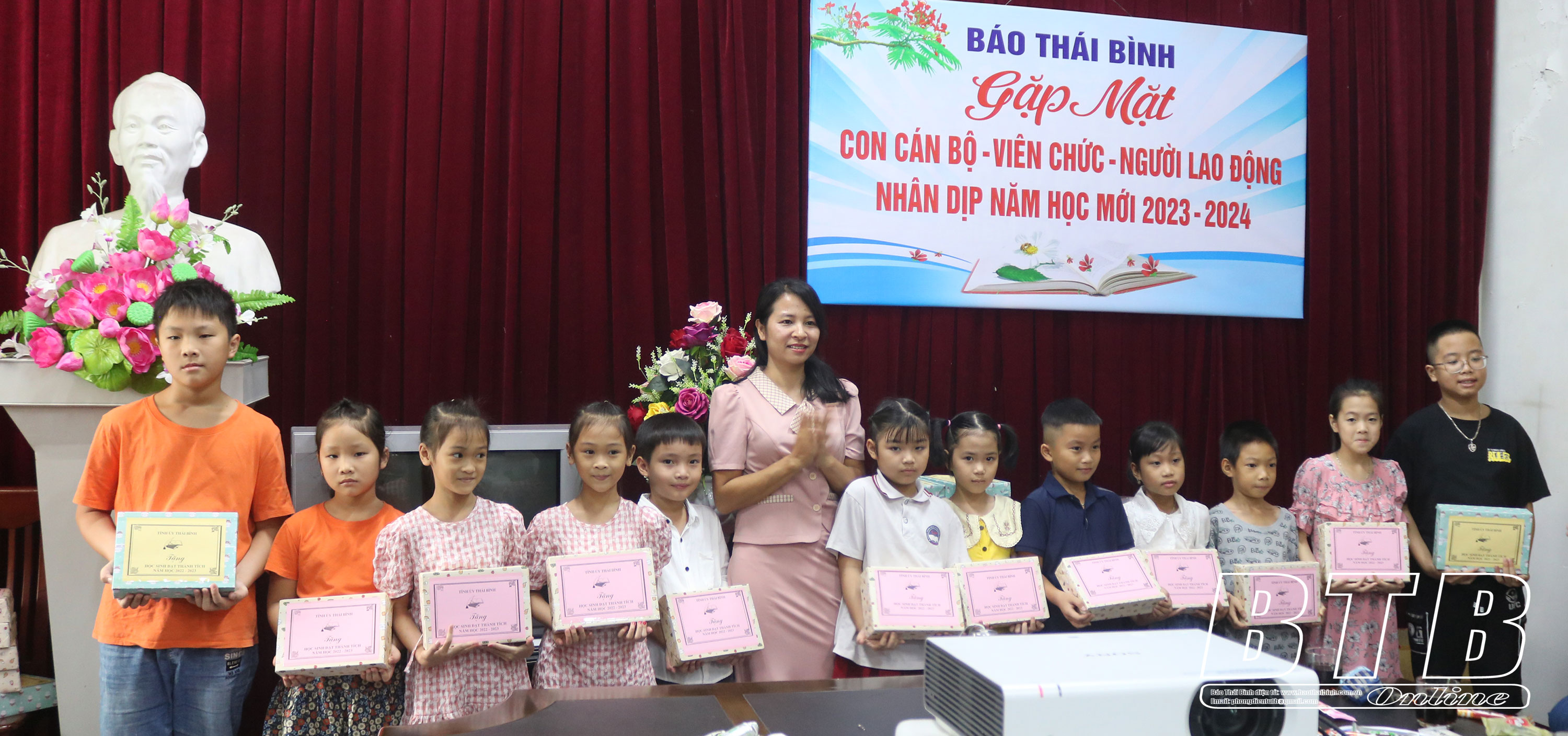 Tại buổi gặp mặt, Báo Thái Bình đã động viên, khen thưởng, trao 53 suất quà cho các cháu, chúc các cháu cố gắng học tốt, đạt nhiều thành tích cao hơn nữa trong năm học mới 2023-2024.