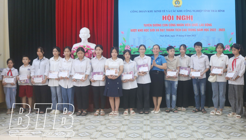 Năm học 2022 - 2023, Công đoàn Khu kinh tế và các khu công nghiệp tỉnh có 30.496 cháu là con CNVCLĐ đang học từ lớp 1 đến lớp 12. Kết thúc năm học có 4.218 cháu đạt học sinh tiên tiến, 8.185 cháu đạt học sinh giỏi cấp trường, 724 cháu đạt học sinh giỏi cấp huyện, thành phố; 340 cháu đạt danh hiệu học sinh giỏi cấp tỉnh; 53 cháu đạt học sinh giỏi cấp quốc gia, khu vực và quốc tế. Trong số các cháu đạt học sinh giỏi các cấp có 290 cháu vượt khó học giỏi. Trong năm, Công đoàn Khu kinh tế và các khu công nghiệp tỉnh đã tổ chức tuyên dương, trao quà cho 379 cháu là con đoàn viên, CNVCLĐ có thành tích xuất sắc và các cháu học sinh vượt khó, chăm ngoan học giỏi. Trong đó, tại hội nghị tuyên dương, Công đoàn Khu kinh tế và các khu công nghiệp tỉnh đã tổ chức khen thưởng cho 72 cháu đạt danh hiệu học sinh giỏi cấp tỉnh, cấp quốc gia, quốc tế và học sinh vượt khó học giỏi.
