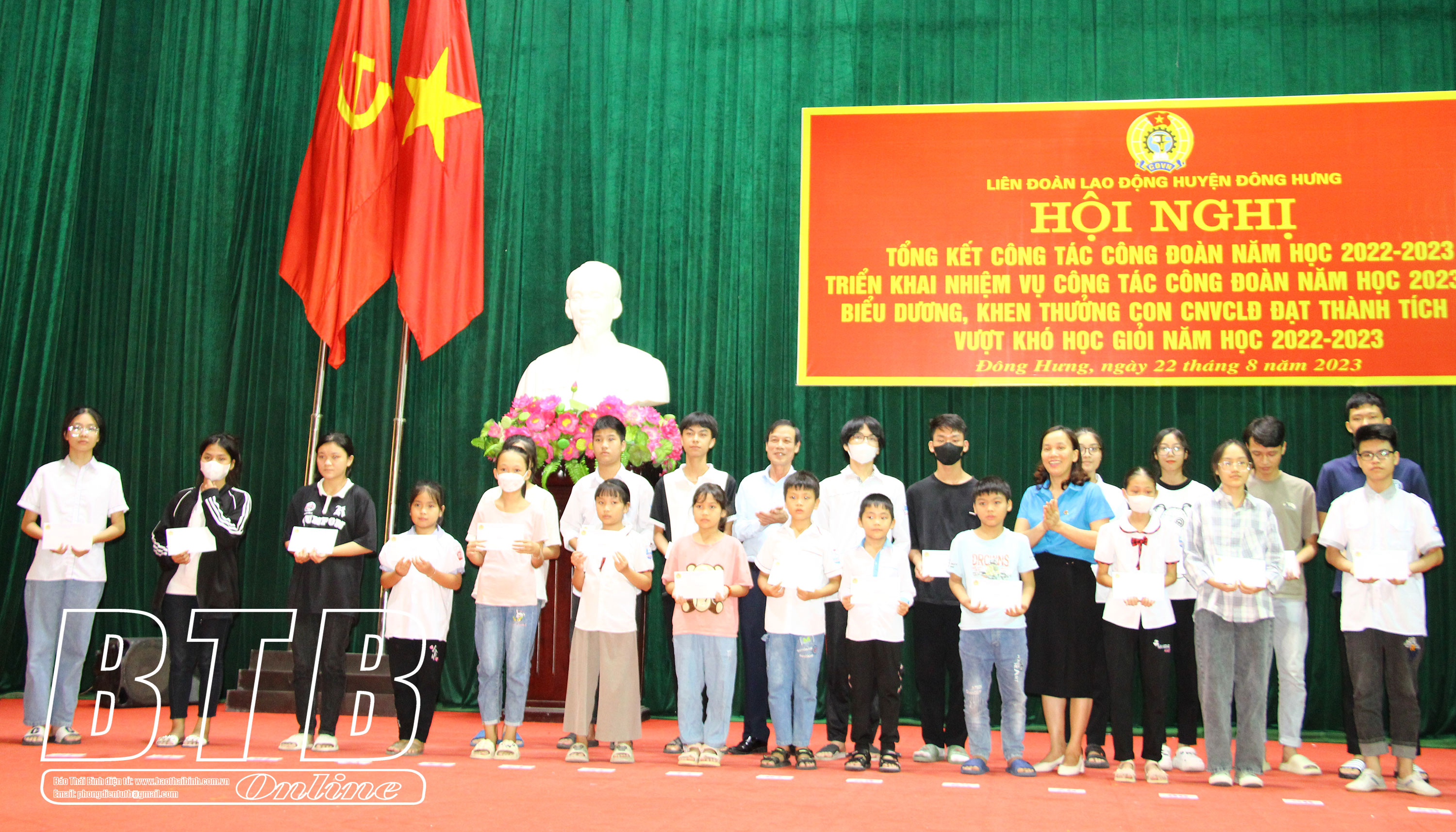 Tại hội nghị, 36 tập thể, cá nhân có thành tích xuất sắc thực hiện hoạt động công đoàn trường học năm học 2022 - 2023; 83 học sinh là con công nhân, giáo viên, người lao động có thành tích xuất sắc, vượt khó học giỏi năm học 2022 - 2023 được khen thưởng.