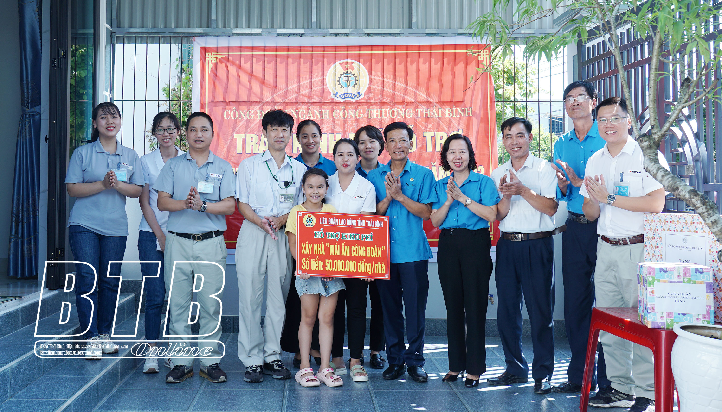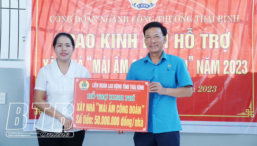 Đoàn đã đến thăm và trao kinh phí hỗ trợ cho chị Chu Thị Bình, xã An Ninh (Tiền Hải), là đoàn viên Công đoàn Chi nhánh Công ty TNHH Yazaki có hoàn cảnh khó khăn. Chị Bình có hoàn cảnh bố mẹ mất sớm, hiện là mẹ đơn thân, trước đây, mẹ con chị phải sinh sống trong căn nhà xuống cấp, dột nát, không có điều kiện sửa chữa. Được sự hỗ trợ của các tổ chức công đoàn và chính quyền địa phương, chị Bình đã được nhận 50 triệu đồng từ quỹ mái ấm công đoàn của Liên đoàn Lao động tỉnh để xây mới nhà ở. Ngoài ra, chị cũng được nhận sự quan tâm hỗ trợ từ Chi nhánh Công ty TNHH Yazaki tại Thái Bình. Sau khoảng 3 tháng thi công, căn nhà mái bằng 1 tầng kiên cố, khang trang, rộng 65m2 với 2 phòng ngủ, phù hợp cho nhu cầu sử dụng của 2 mẹ con chị được đưa vào sử dụng,