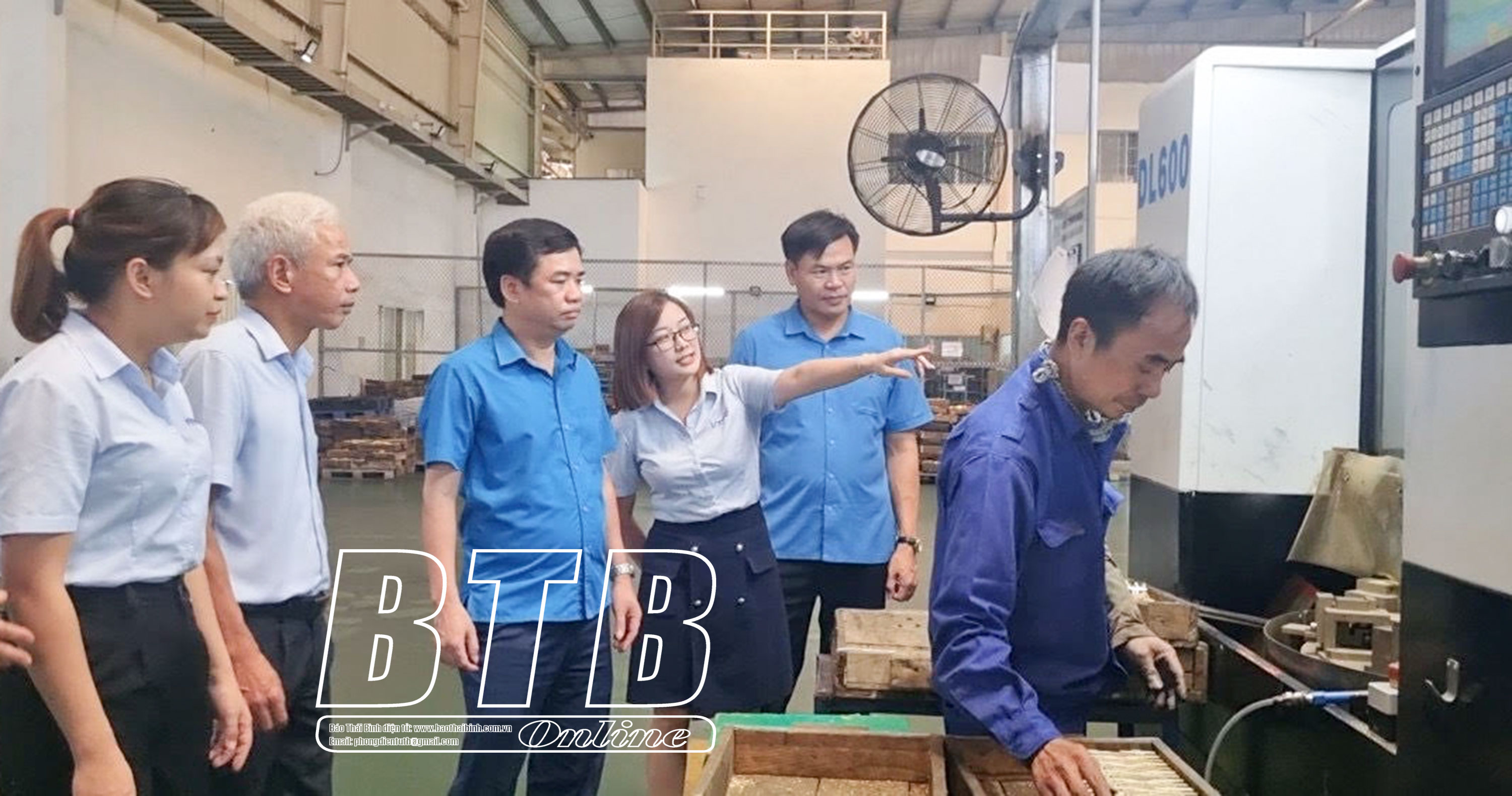 Lãnh đạo Liên đoàn Lao động tỉnh nắm bắt tình hình sản xuất, đời sống, việc làm của người lao động Công ty TNHH Công nghiệp Tactician (khu công nghiệp Phúc Khánh, thành phố Thái Bình).