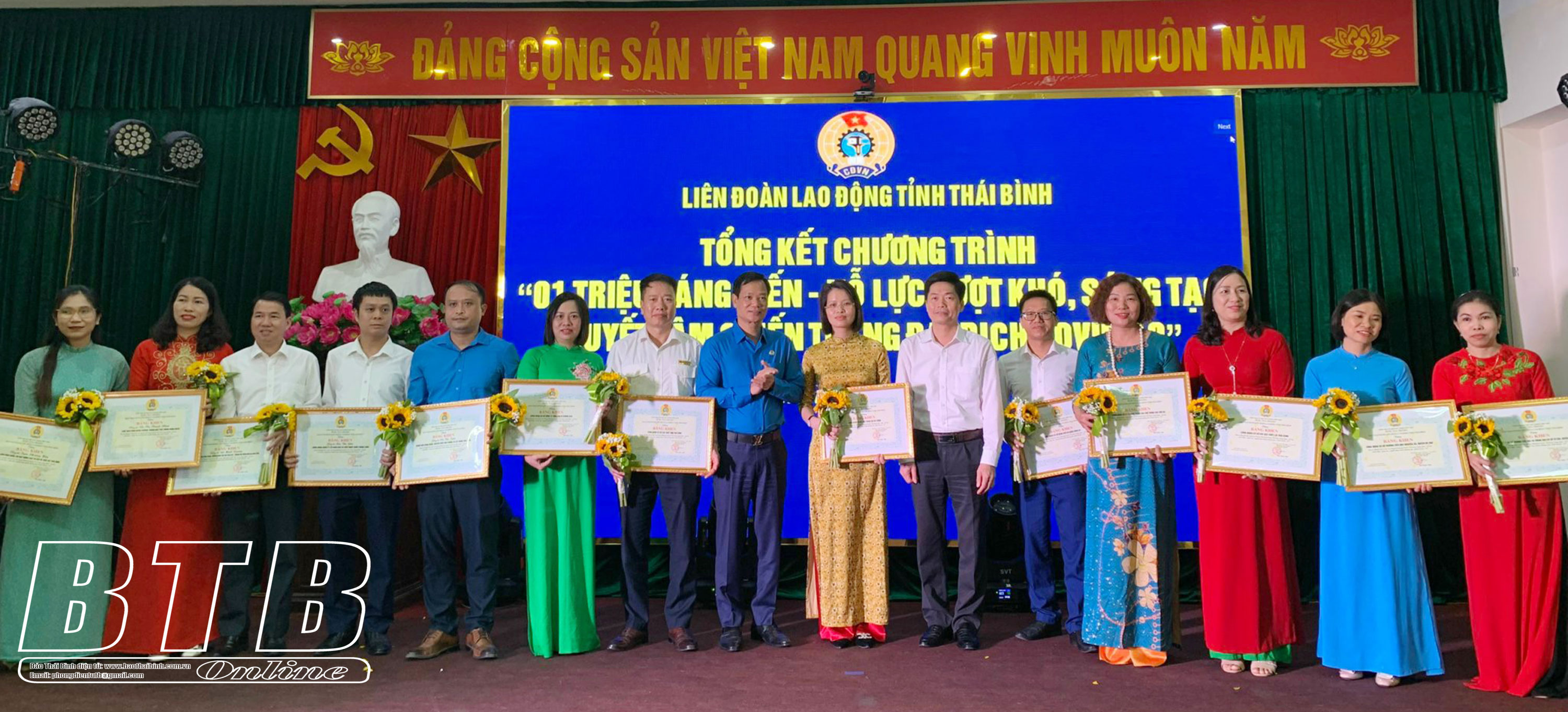 Tại hội nghị, 76 tập thể, cá nhân có thành tích xuất sắc trong chương trình “1 triệu sáng kiến - nỗ lực vượt khó, sáng tạo, quyết tâm chiến thắng đại dịch Covid-19” đã được nhận bằng khen của Tổng Liên đoàn Lao động Việt Nam, Liên đoàn Lao động tỉnh.
