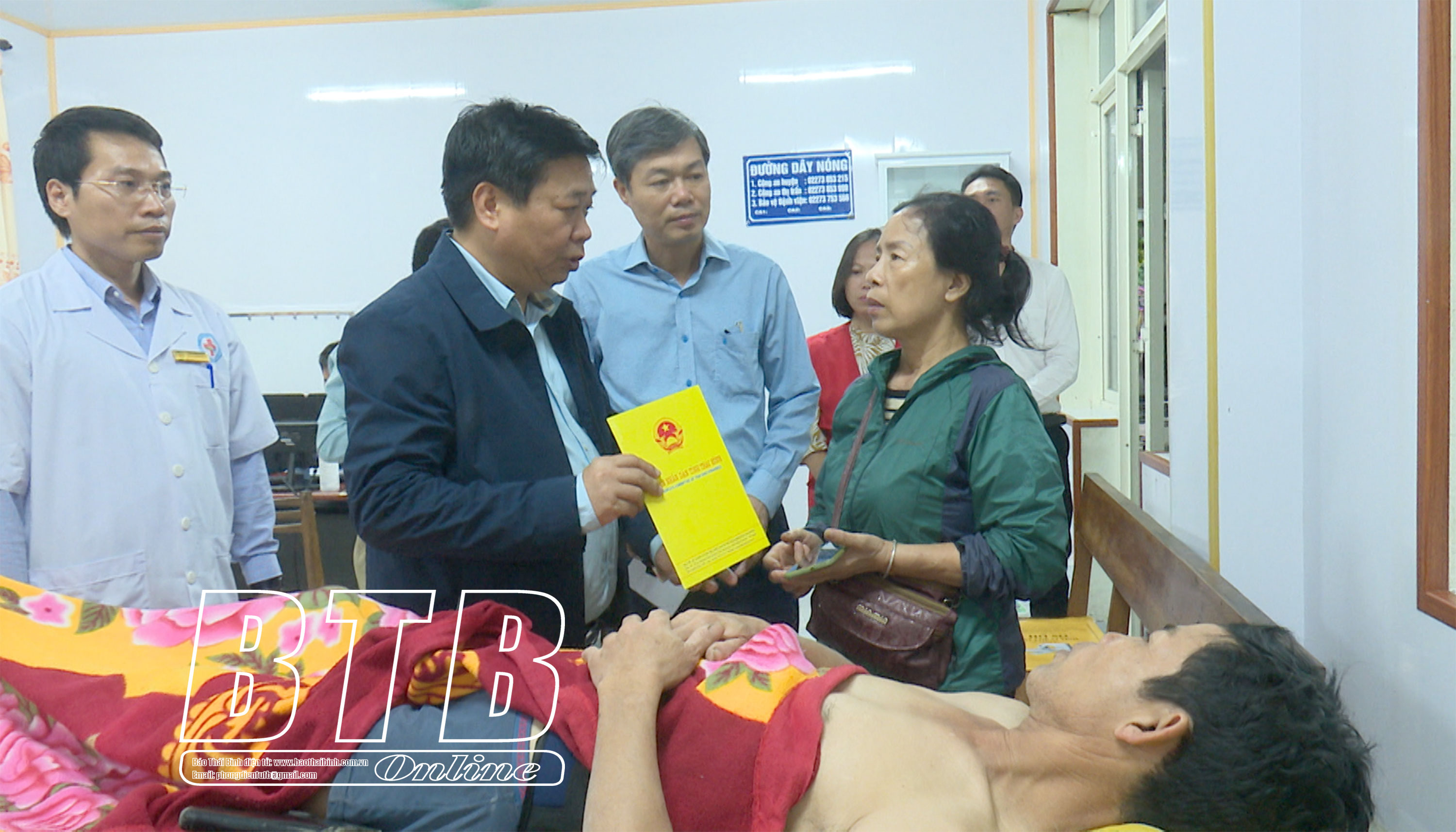 Tiếp đó, đồng chí Phó Chủ tịch thường trực UBND tỉnh cùng lãnh đạo UBND huyện Thái Thụy đã đến thăm hỏi, trao hỗ trợ cho những công nhân bị thương trong vụ tại nạn đang được cấp cứu tại Bệnh viện Đa khoa huyện Thái Thụy. Tại đây, đồng chí Phó Chủ tịch thường trực UBND tỉnh đã ân cần thăm hỏi sức khỏe, động viên các công nhân bị thương cố gắng khắc phục khó khăn, yên tâm điều trị để sớm bình phục.