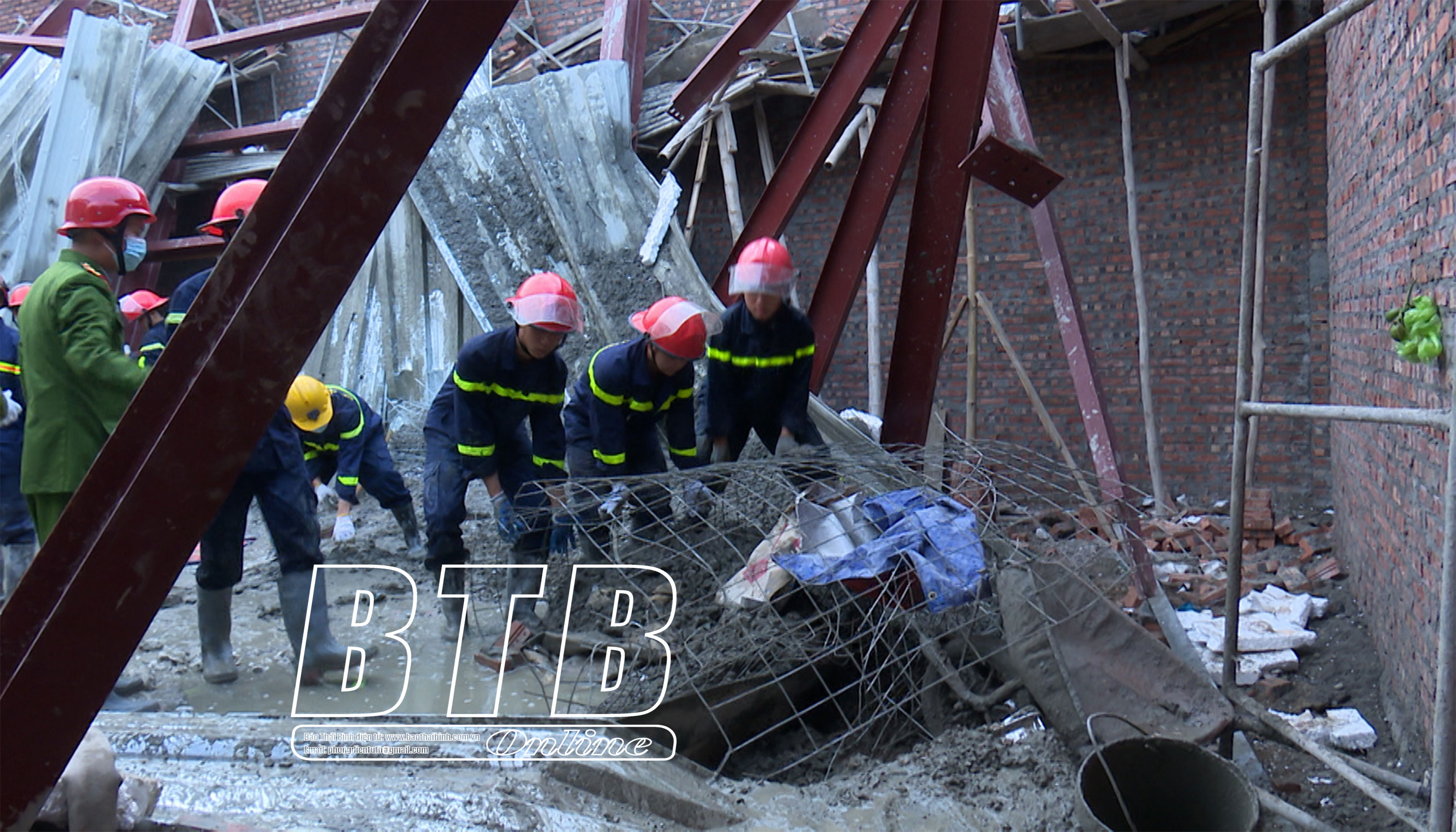 Ngay sau khi xảy ra vụ tai nạn lao động tại thị trấn Diêm Điền (Thái Thụy) vào chiều ngày 12/12, cơ quan chức năng huyện Thái Thụy đã điều động nhiều lực lượng và phương tiện cứu hộ, cứu nạn đến hiện trường phục vụ công tác cứu hộ cứu nạn, giải thoát những người bị mắc kẹt bên trong.