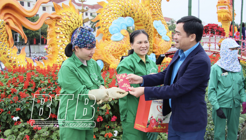 Lãnh đạo Liên đoàn Lao động tỉnh đã thăm hỏi sức khỏe, đời sống của đoàn viên, người lao động; ghi nhận những đóng góp của đoàn viên, người lao động trong công tác bảo đảm vệ sinh môi trường, xây dựng cảnh quan thành phố Thái Bình sáng, xanh, sạch, đẹp; chúc đoàn viên, người lao động của Công ty Cổ phần Môi trường và Công trình đô thị Thái Bình năm mới an khang, thịnh vượng, tiếp tục nỗ lực hoàn thành tốt mọi công việc được giao.