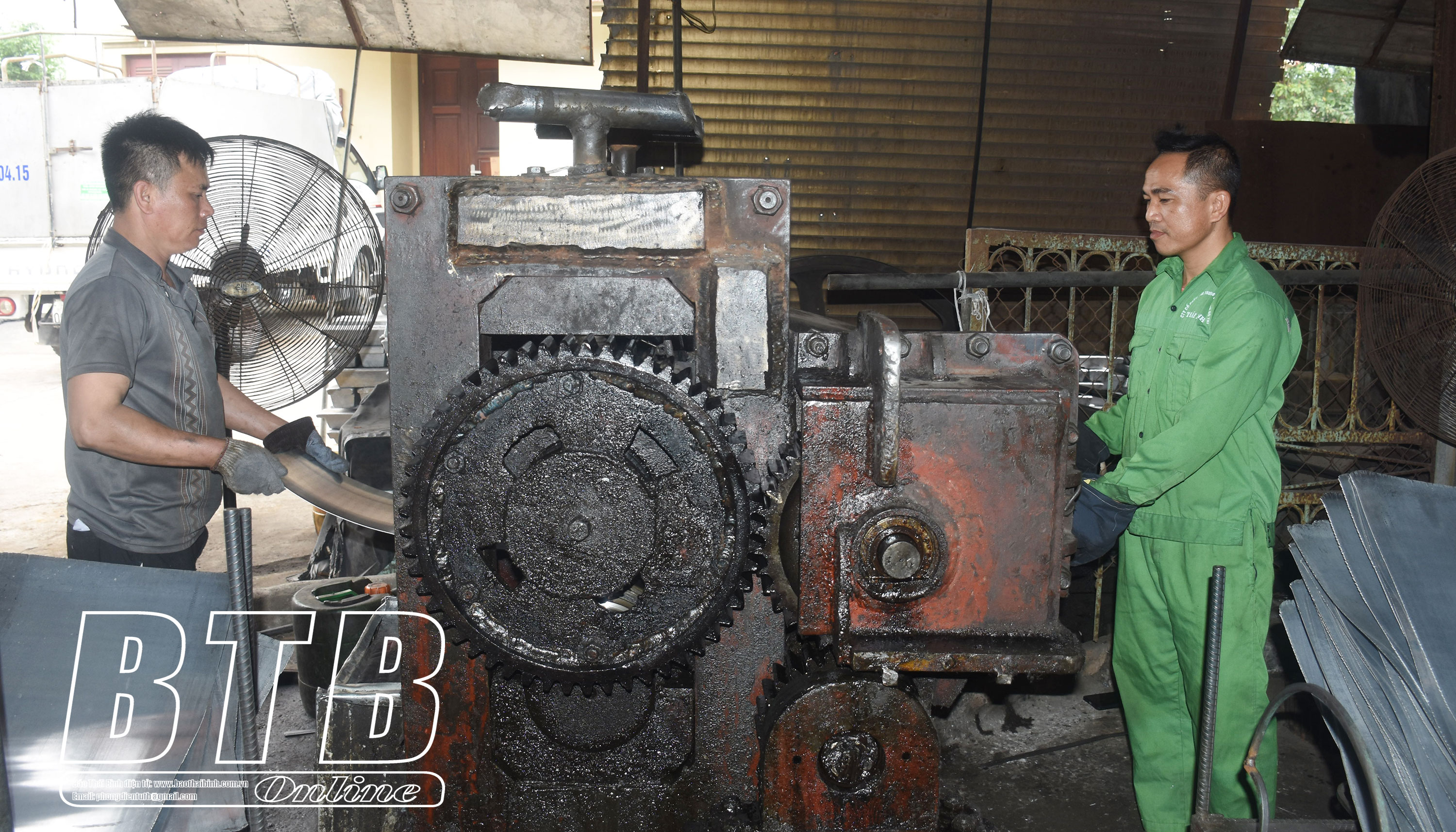 Người lao động tại xã Vũ Hội (Vũ Thư) vận hành máy cán ép nhôm công suất cao.
