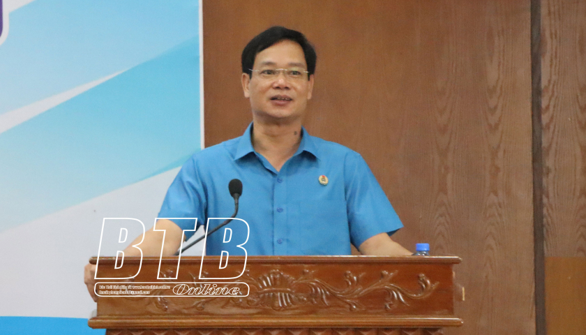 Lãnh đạo Liên đoàn Lao động tỉnh phát biểu tại hội nghị tập huấn.