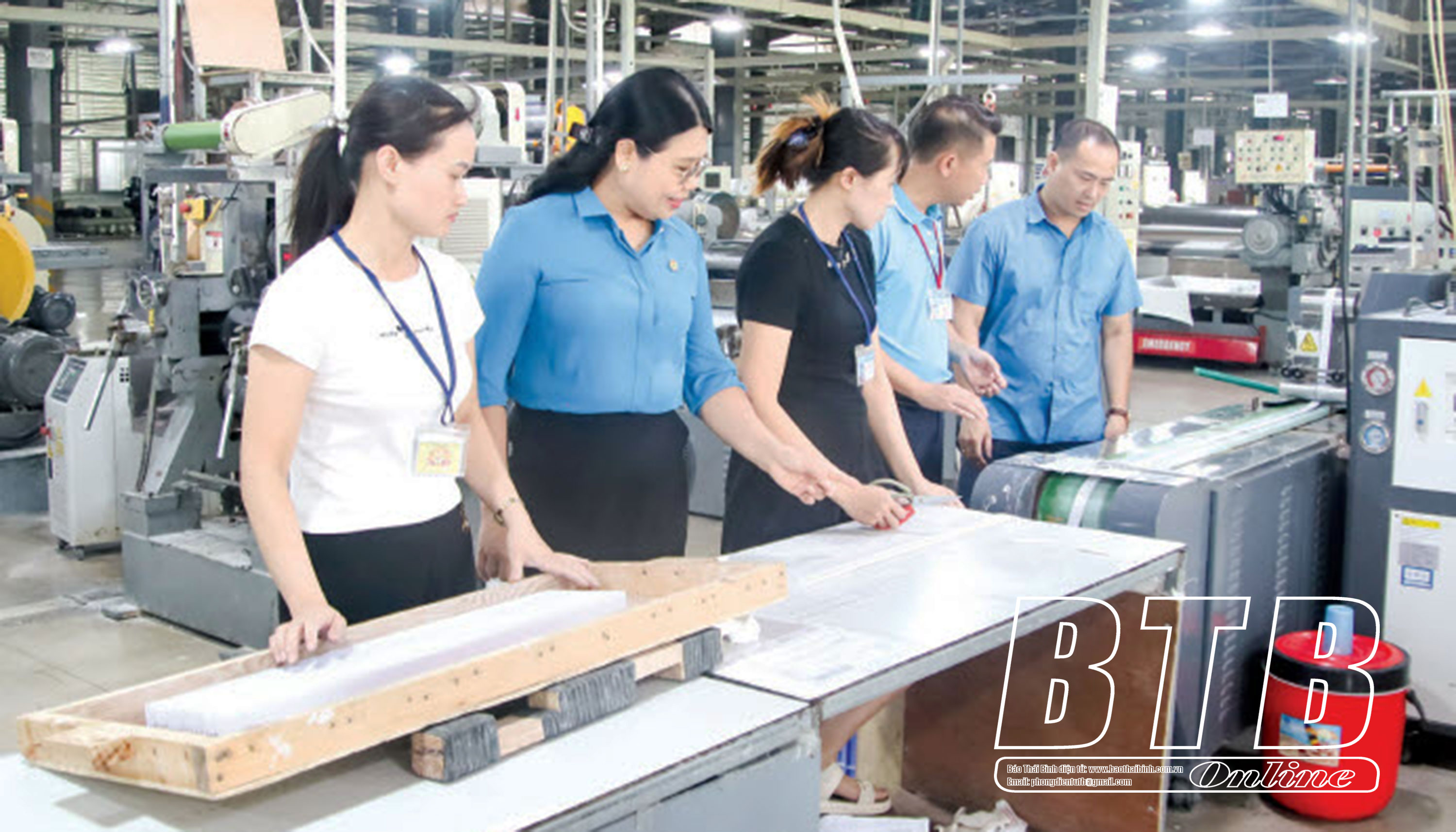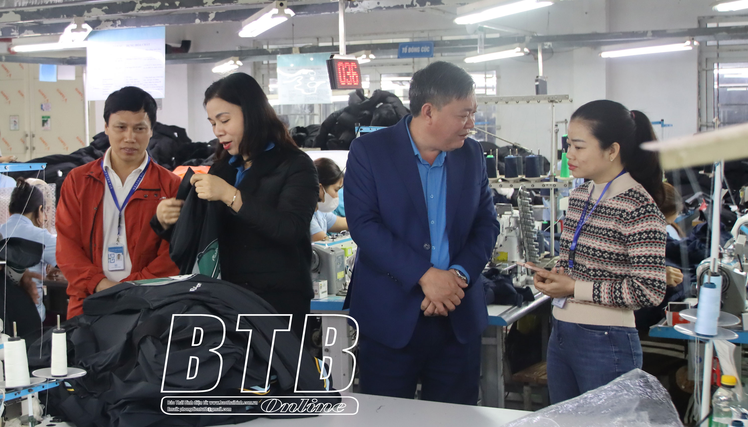 Liên đoàn Lao động tỉnh, Liên đoàn Lao động huyện Thái Thụy thăm tình hình sản xuất kinh doanh của Công ty TNHH May Gia Nguyễn (Thái Thụy).