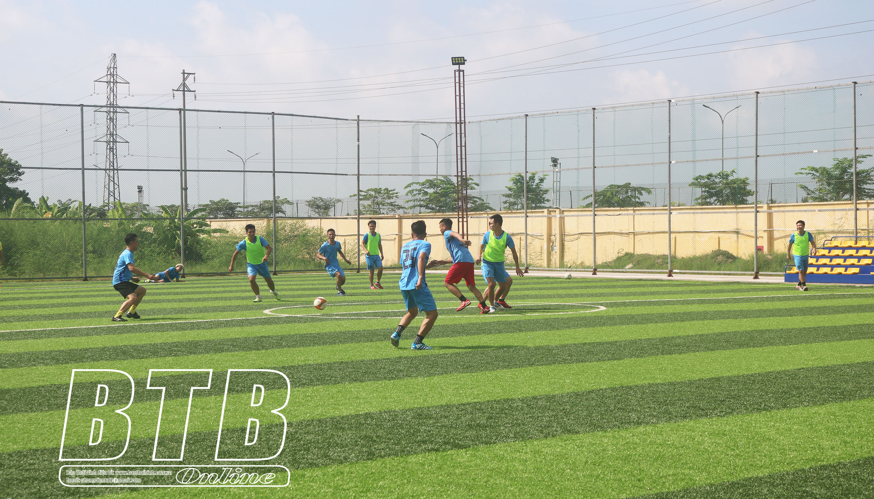 Sân cỏ nhân tạo tại Công ty TNHH Thép đặc biệt Shengli Việt Nam tạo sân chơi cho đoàn viên, công nhân lao động.