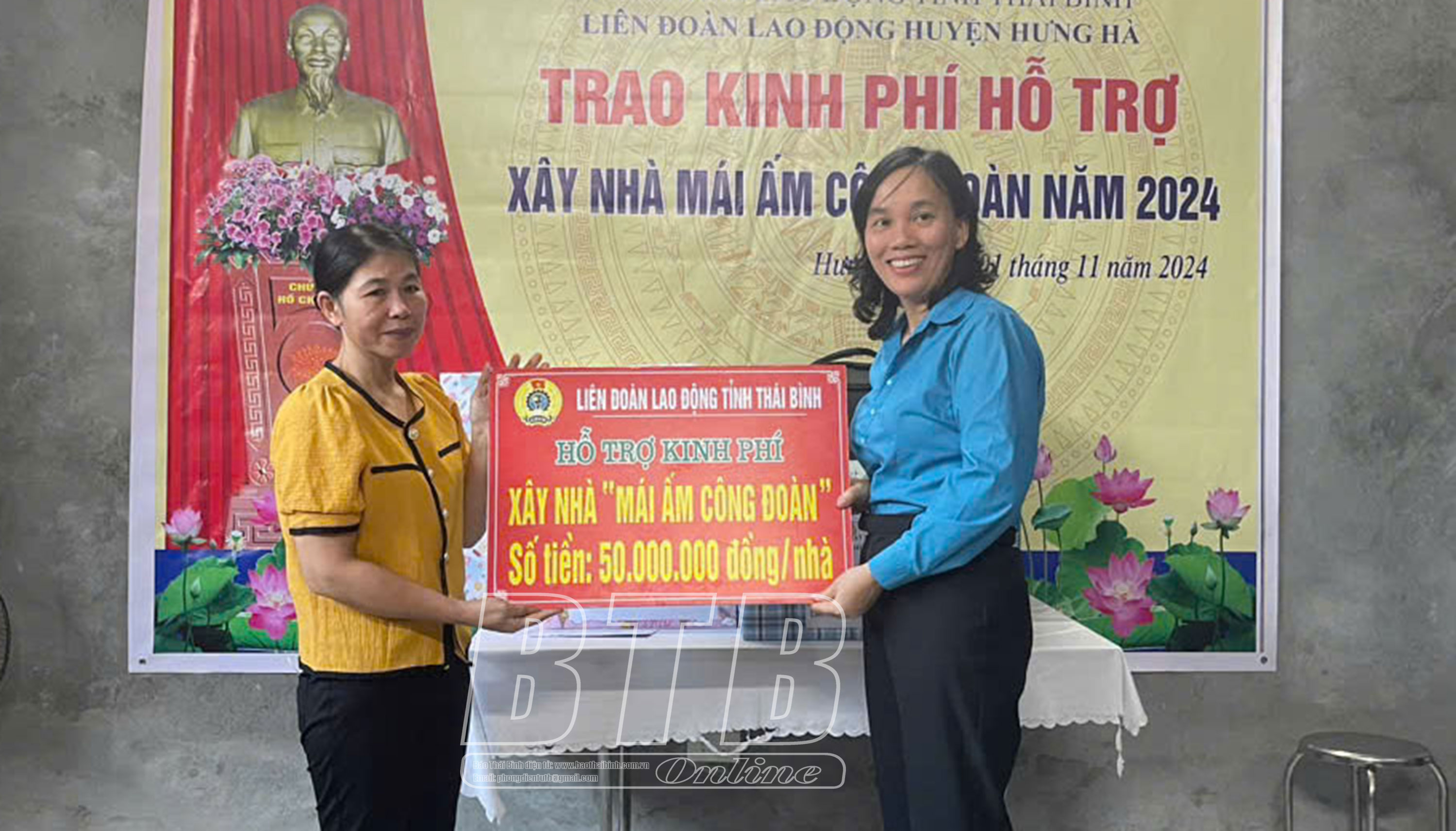 Để giúp đỡ các đoàn viên có kinh phí xây dựng nhà ở, ổn định cuộc sống, LĐLĐ huyện Hưng Hà đã tổ chức trao tặng kinh phí hỗ trợ mỗi chị 50 triệu đồng. Đến nay, công trình nhà ở của chị Hoài có tổng diện tích 75m2 với tổng kinh phí 400 triệu đồng, công trình nhà ở của chị Vinh có diện tích 80m2 với kinh phí 200 triệu đồng; công trình nhà ở của chị Thuy có diện tích 60m2 với kinh phí 300 triệu đồng đã hoàn thành và đưa vào sử dụng.