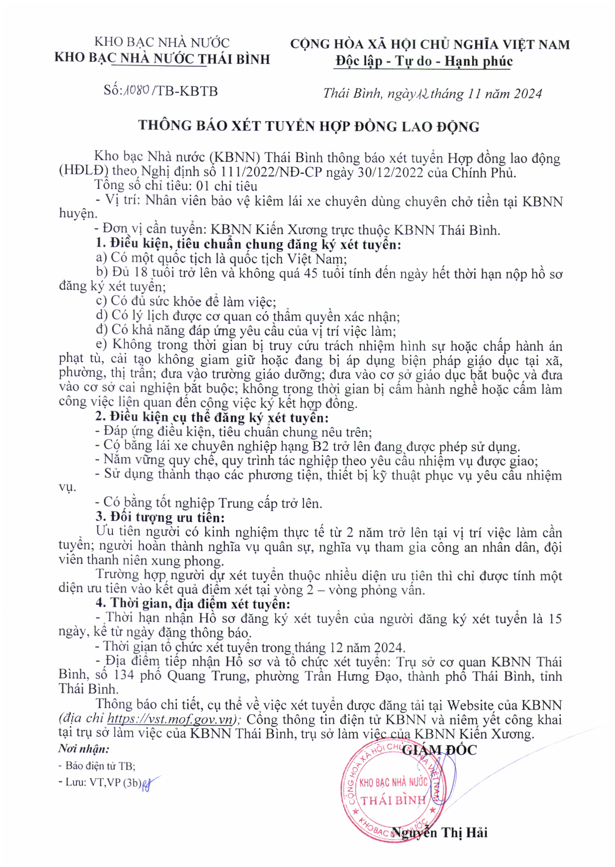 Thông báo xét tuyển hợp đồng lao động