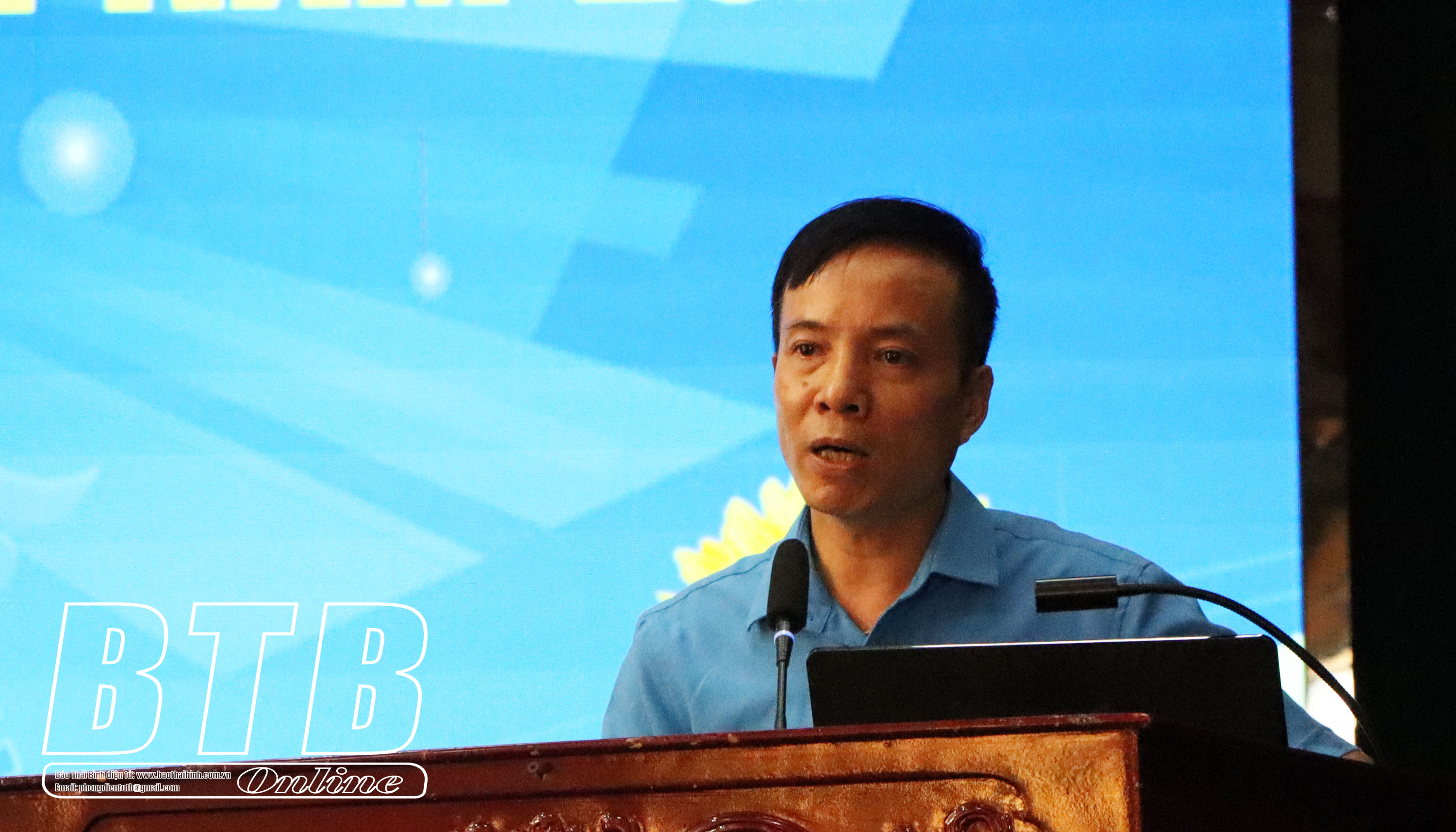 Báo cáo viên truyền đạt tại hội nghị.