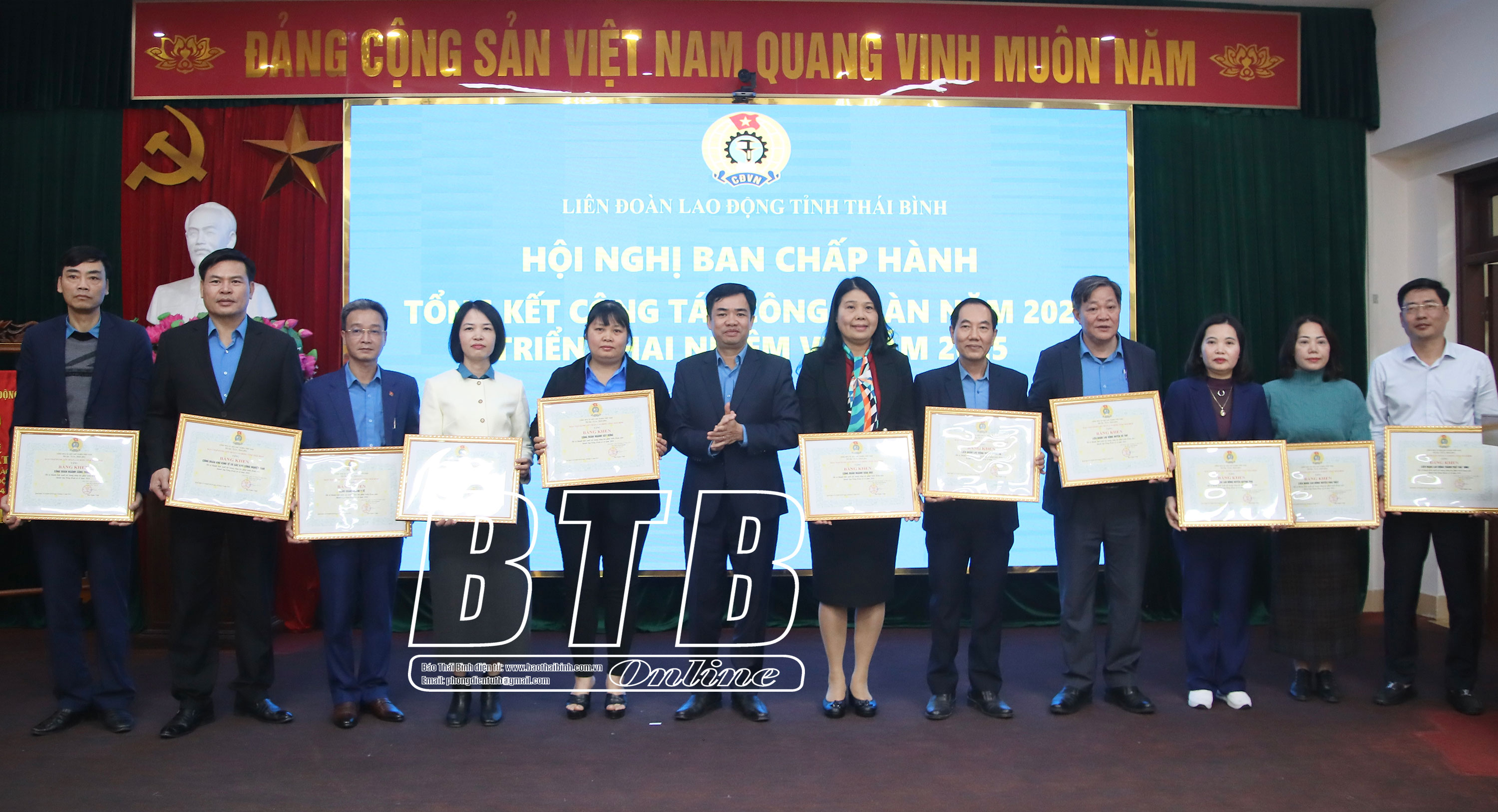 Tại hội nghị, Tổng LĐLĐ Việt Nam tặng cờ thi đua đơn vị xuất sắc, dẫn đầu phong trào thi đua công nhân viên chức lao động và hoạt động công đoàn năm 2024 cho LĐLĐ tỉnh. LĐLĐ tỉnh tặng cờ thi đua, bằng khen cho các tập thể tiêu biểu, có thành tích xuất sắc trong công tác phát triển đoàn viên, thành lập công đoàn cơ sở năm 2024.