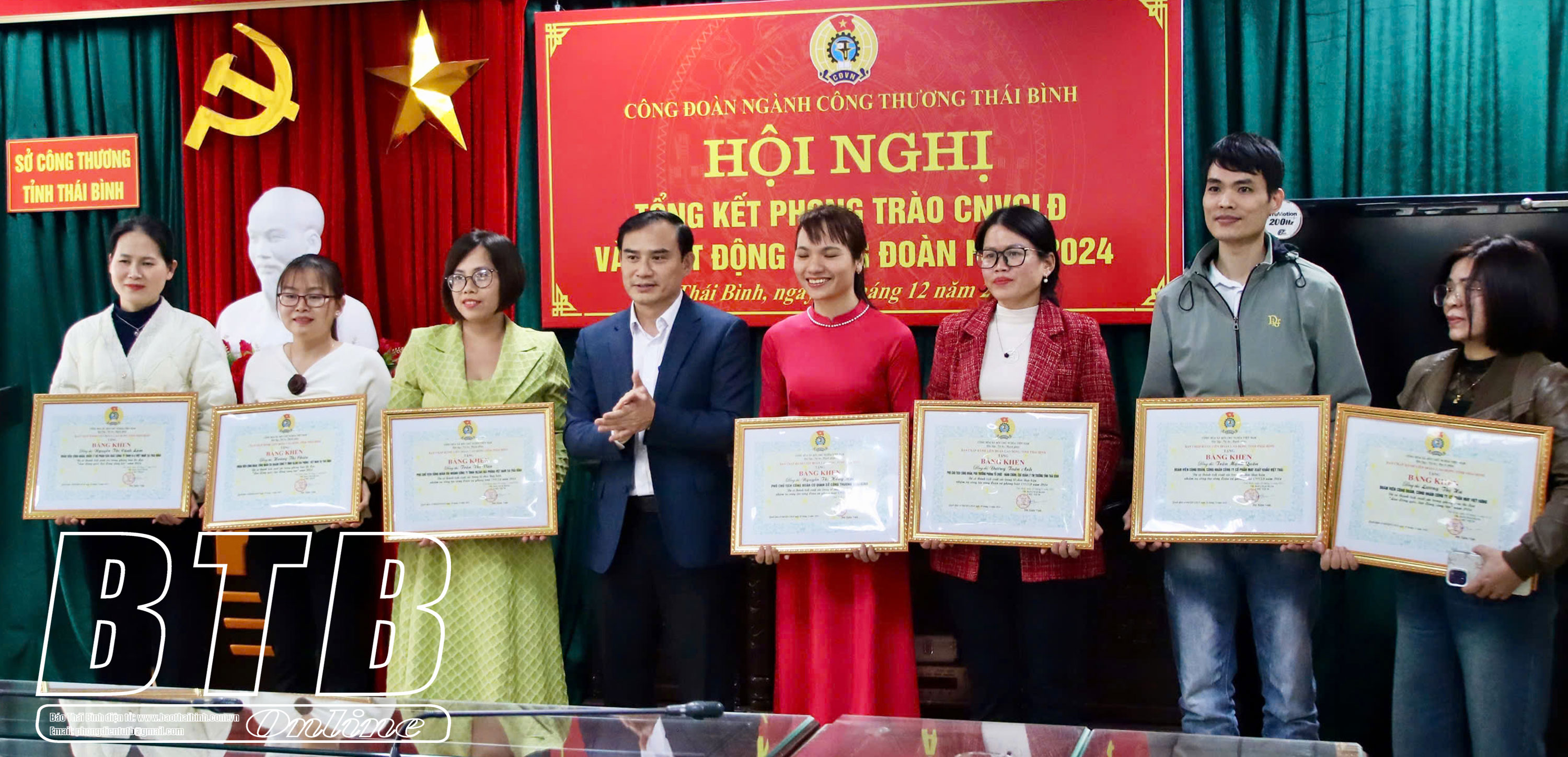 Tại hội nghị, Liên đoàn Lao động tỉnh, Công đoàn ngành công thương đã khen thưởng các tập thể, cá nhân có thành tích xuất sắc trong công tác công đoàn năm 2024.