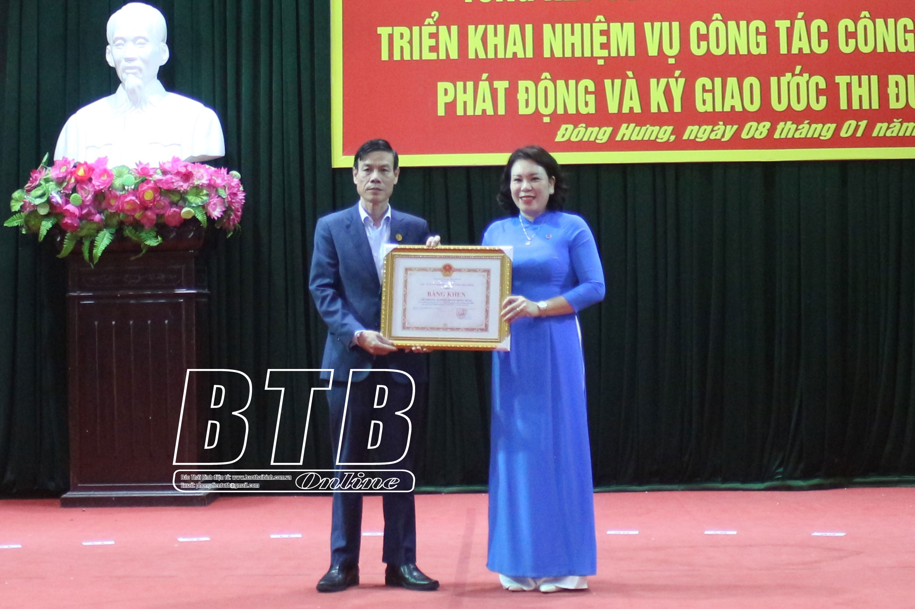 Lãnh đạo huyện Đông Hưng trao bằng khen của UBND tỉnh cho 1 tập thể có thành tích xuất sắc trong phong trào thi đua năm 2024.