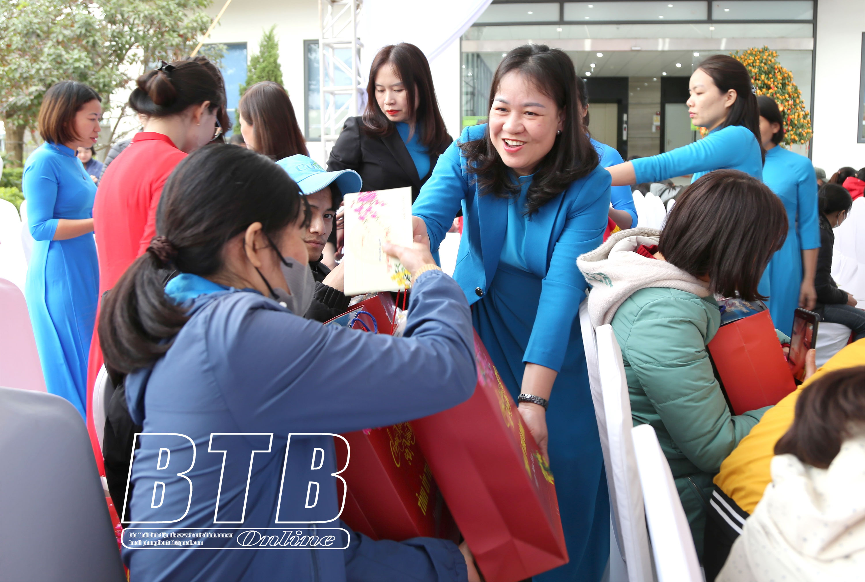 Liên đoàn Lao động tỉnh tặng quà tết công nhân khu công nghiệp Phúc Khánh.