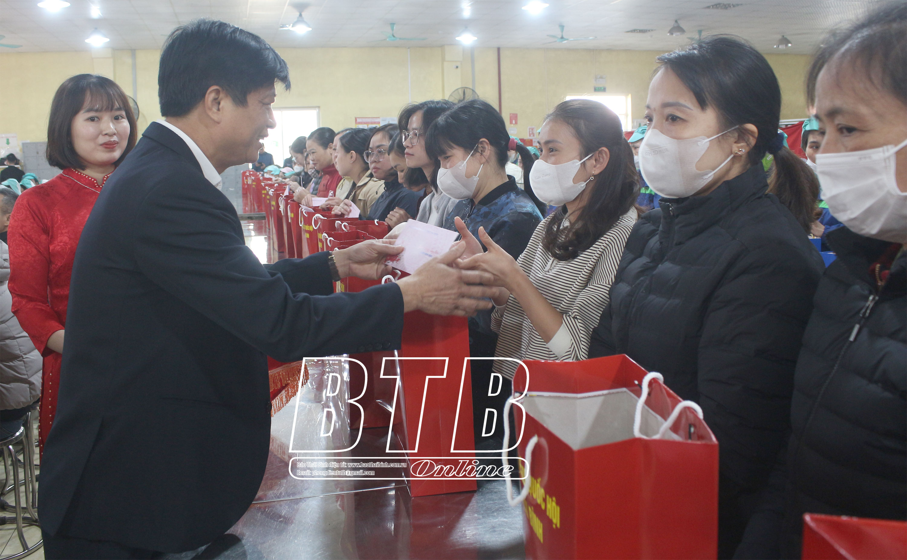 Tại chương trình, đồng chí Phó Trưởng đoàn đại biểu Quốc hội chuyên trách tỉnh và các đồng chí lãnh đạo LĐLĐ tỉnh, huyện Đông Hưng, LĐLĐ huyện Đông Hưng đã trao 237 suất quà tết cho đoàn viên, NLĐ có hoàn cảnh khó khăn của Công ty TNHH Innoflow Vina.