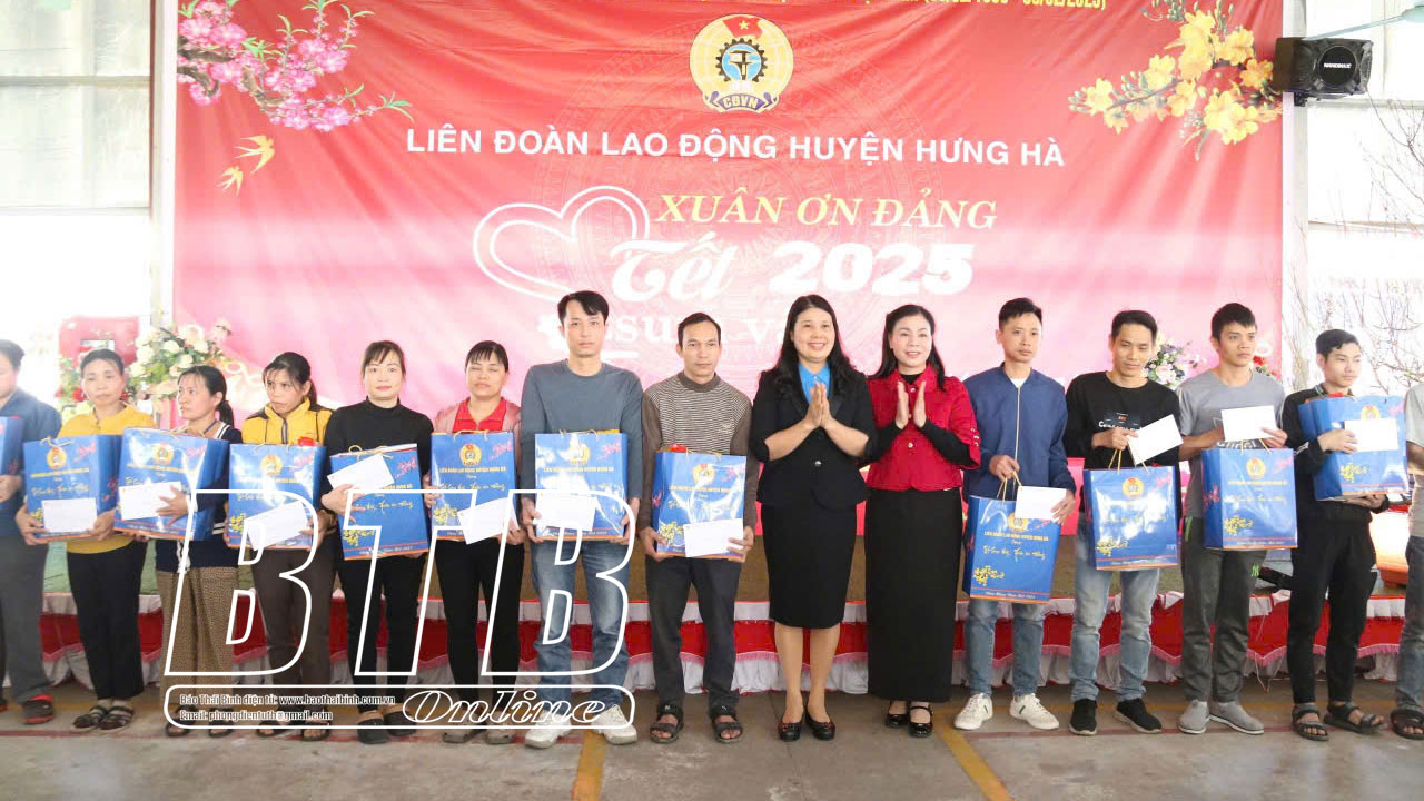 Nhân dịp tết Nguyên đán Ất Tỵ 2025, Liên đoàn Lao động (LĐLĐ) huyện Hưng Hà tổ chức Chương trình "Tết sum vầy - Xuân ơn Đảng" trao quà cho đoàn viên, người lao động có hoàn cảnh khó khăn.