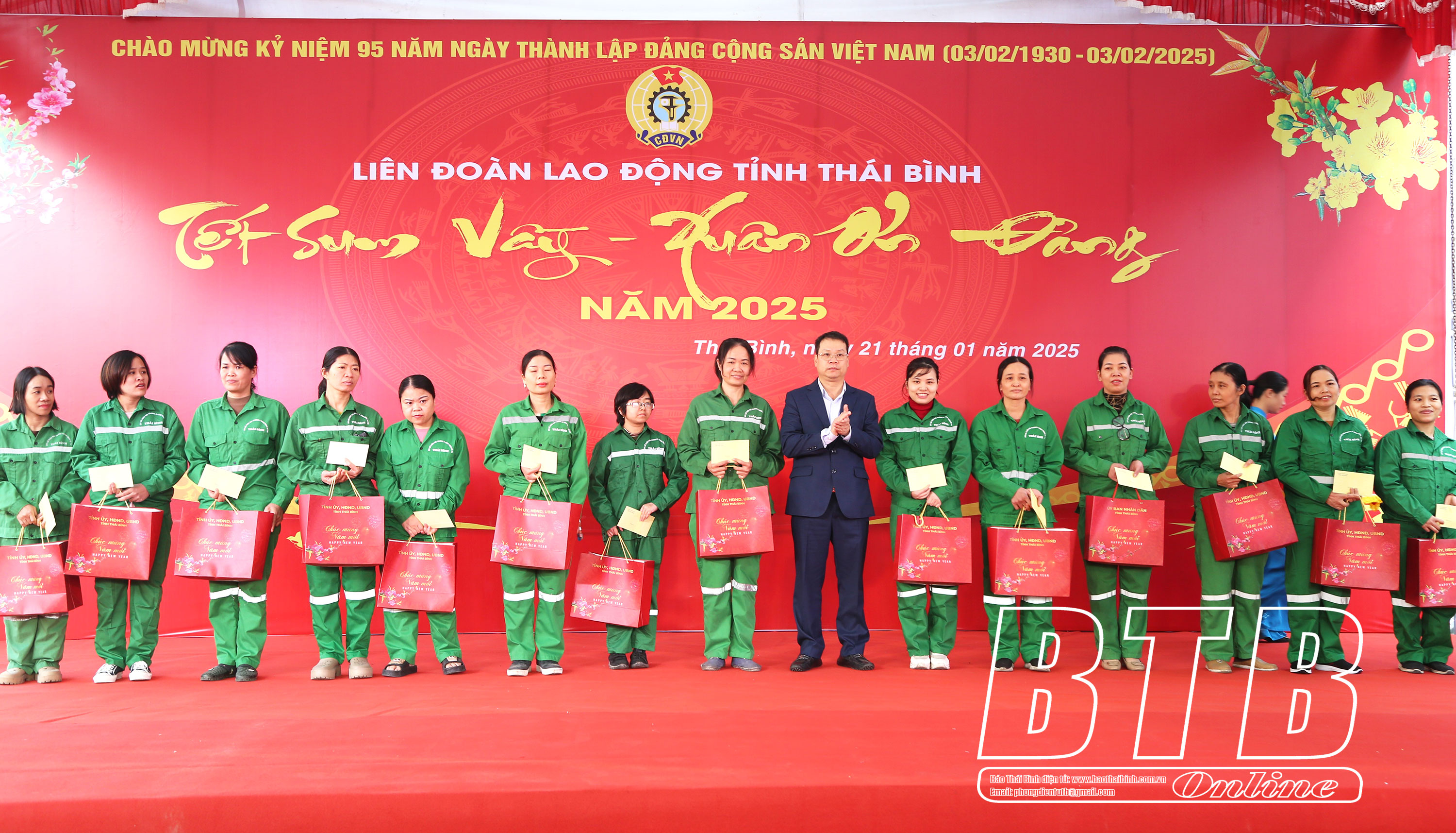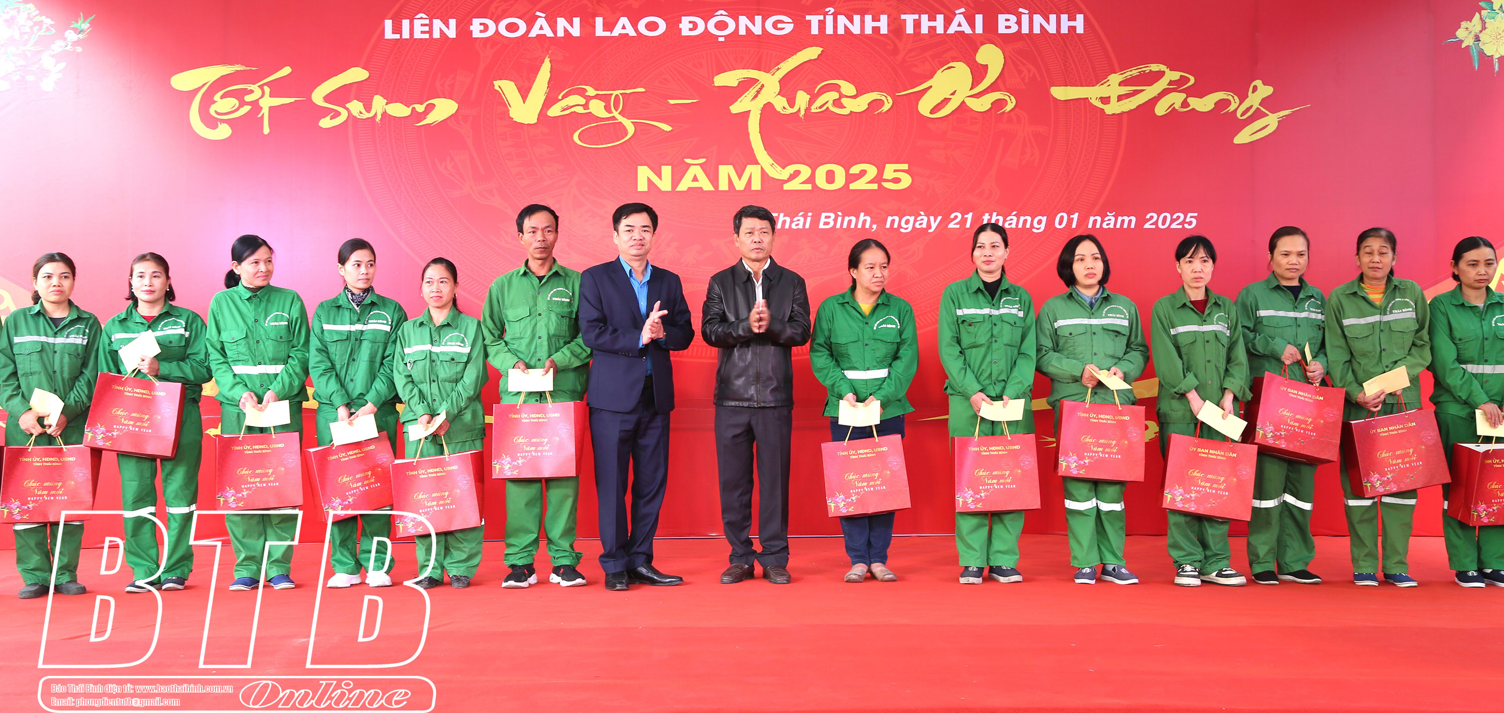 Tại chương trình, đồng chí Phó Bí thư Tỉnh ủy, Chủ tịch UBND tỉnh cùng lãnh đạo thành phố, Liên đoàn Lao động tỉnh đã trao 150 suất quà của Tỉnh ủy, HĐND, UBND tỉnh và UBND thành phố cho đoàn viên, người lao động có hoàn cảnh khó khăn của Công ty Cổ phần Môi trường và Công trình đô thị Thái Bình.