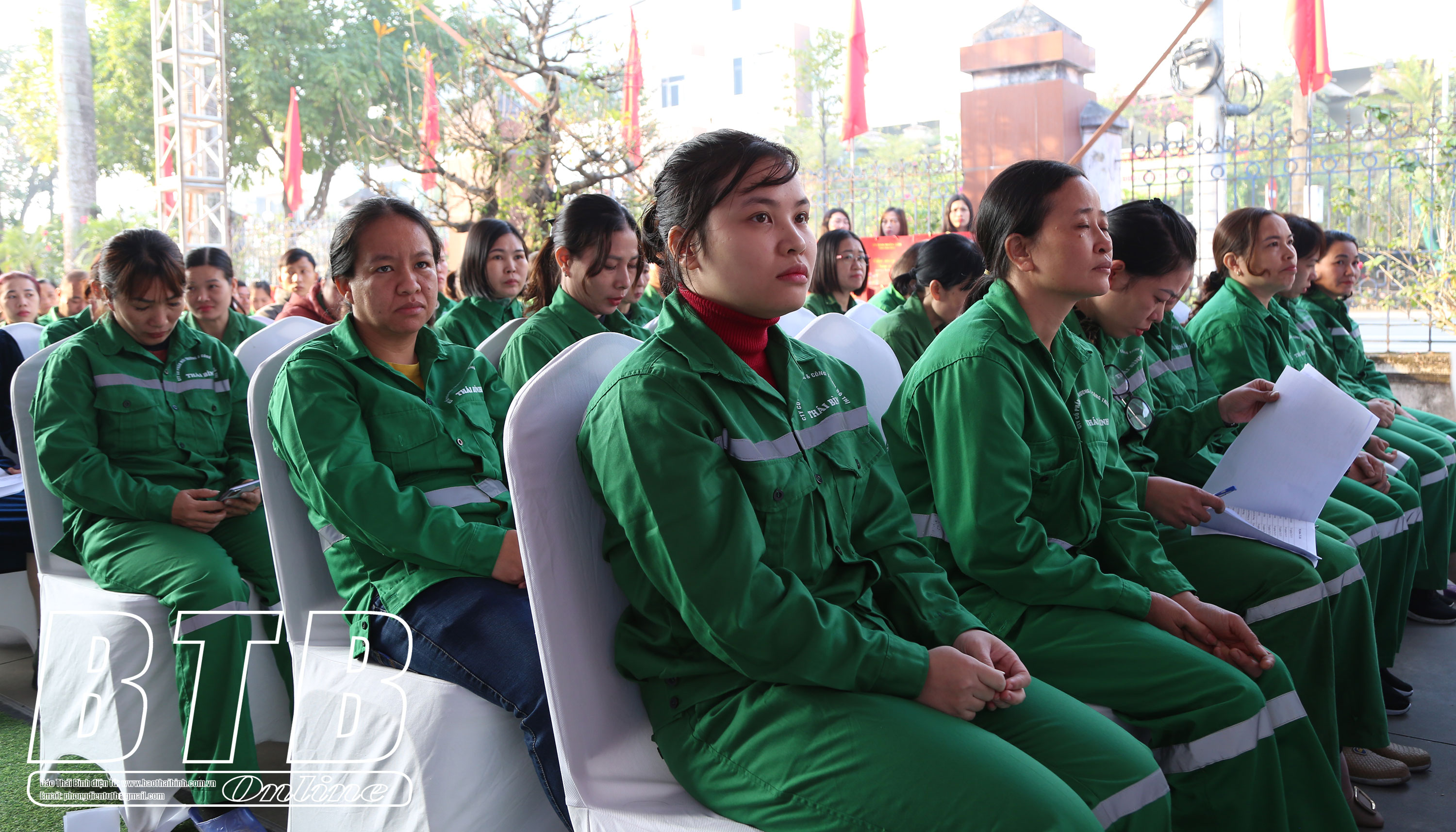 Công nhân Công ty Cổ phần Môi trường và Công trình đô thị Thái Bình dự chương trình.