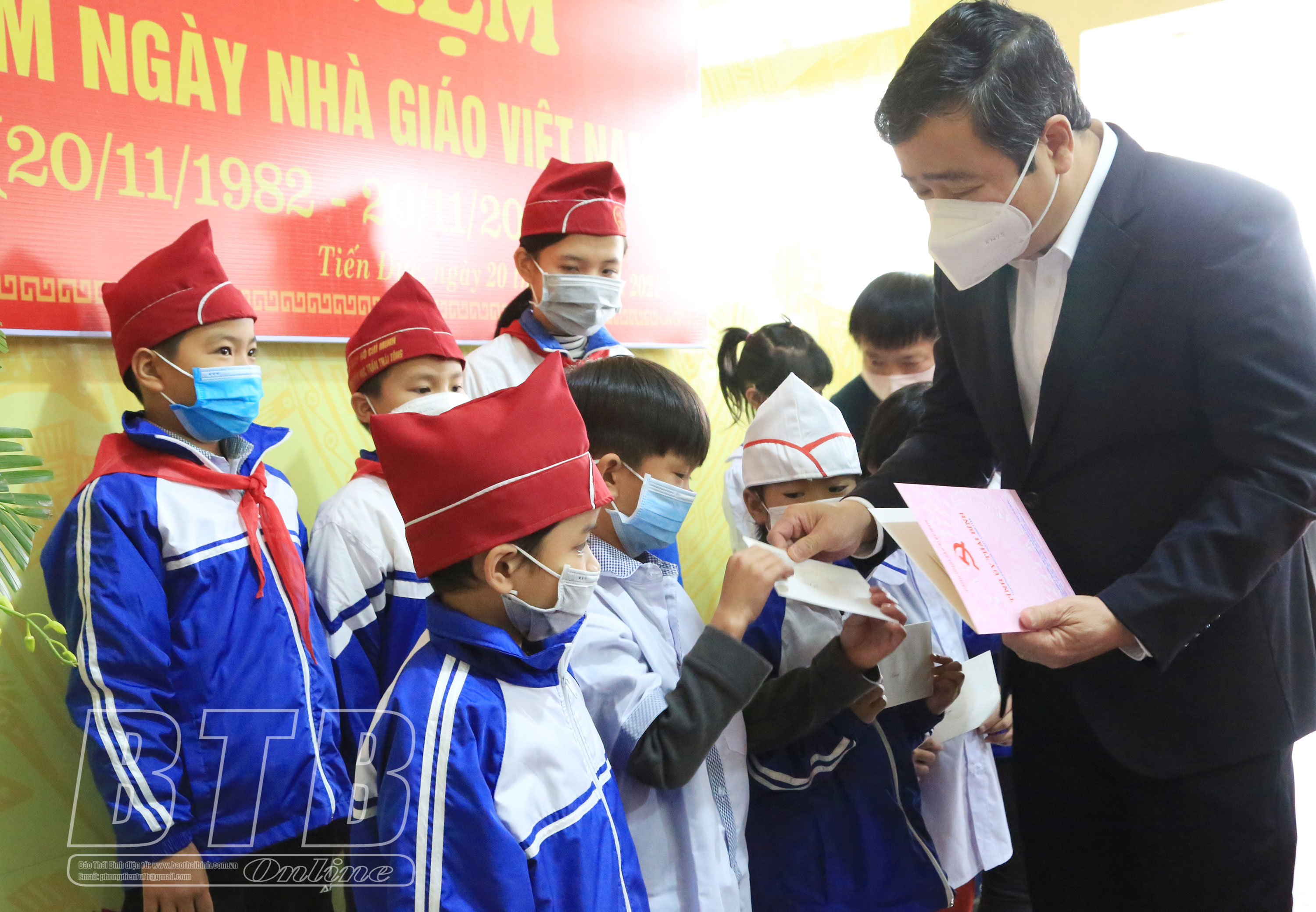 Đồng chí Ngô Đông Hải, Ủy viên Ban Chấp hành Trung ương Đảng, Bí thư Tỉnh ủy tặng quà học sinh có hoàn cảnh khó khăn Trường Tiểu học Trần Thái Tông.