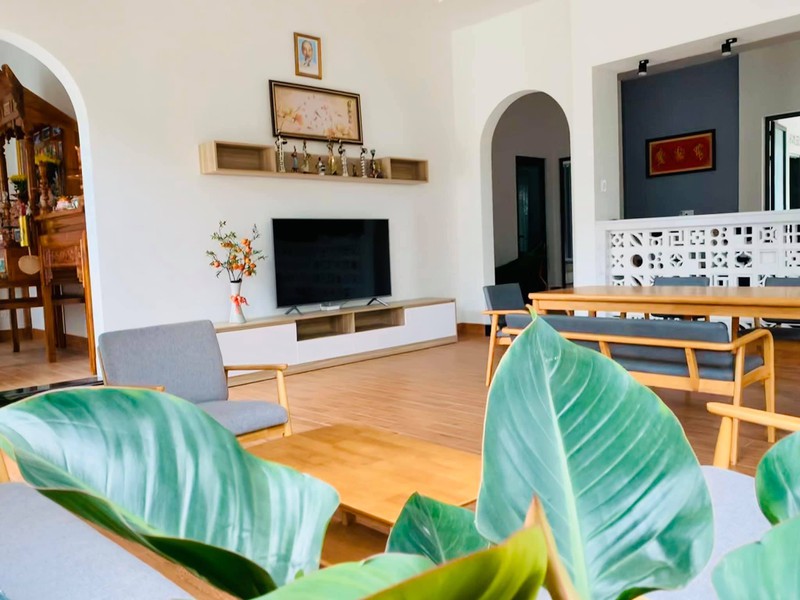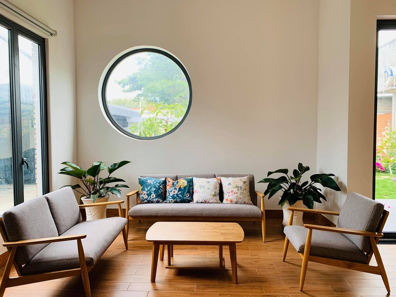Không gian đảm bảo yếu tố đơn giản nhưng vẫn tiện nghi cho gia đình sinh hoạt. Bốn góc nhà đón ánh sáng, thông qua cửa kính, cửa ra vào và ô thoáng.