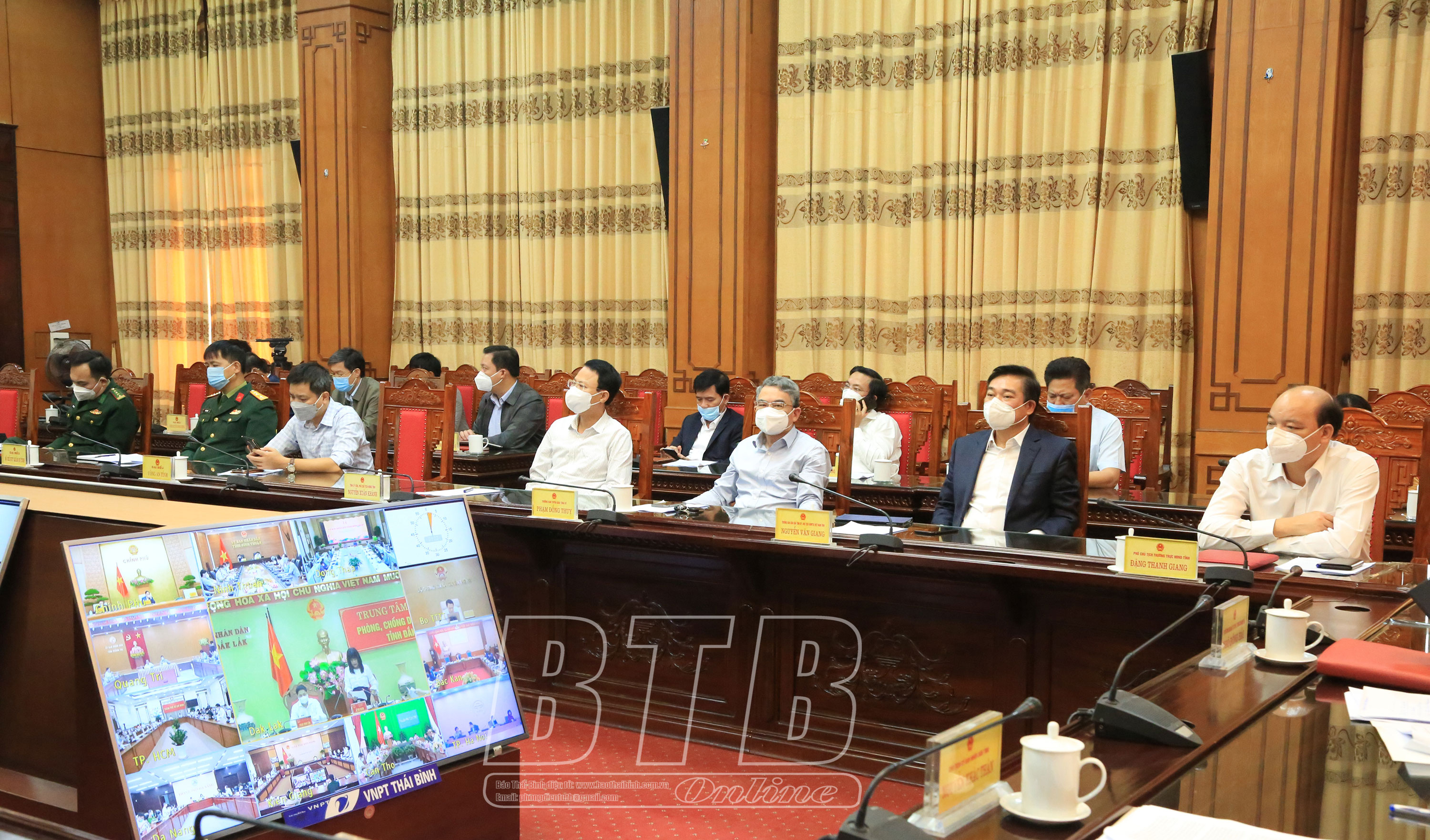 Dự họp tại điểm cầu Thái Bình có các đồng chí: Ngô Đông Hải, Ủy viên Ban Chấp hành Trung ương Đảng, Bí thư Tỉnh ủy; Nguyễn Khắc Thận, Phó Bí thư Tỉnh ủy, Chủ tịch UBND tỉnh, Trưởng ban Chỉ đạo phòng, chống dịch Covid-19 tỉnh; các đồng chí Phó trưởng ban Chỉ đạo phòng, chống dịch Covid-19 tỉnh; lãnh đạo Ủy ban MTTQ tỉnh, Ban Dân vận Tỉnh ủy, Ban Tuyên giáo Tỉnh ủy và đại diện một số sở, ngành, huyện, thành phố, đơn vị.