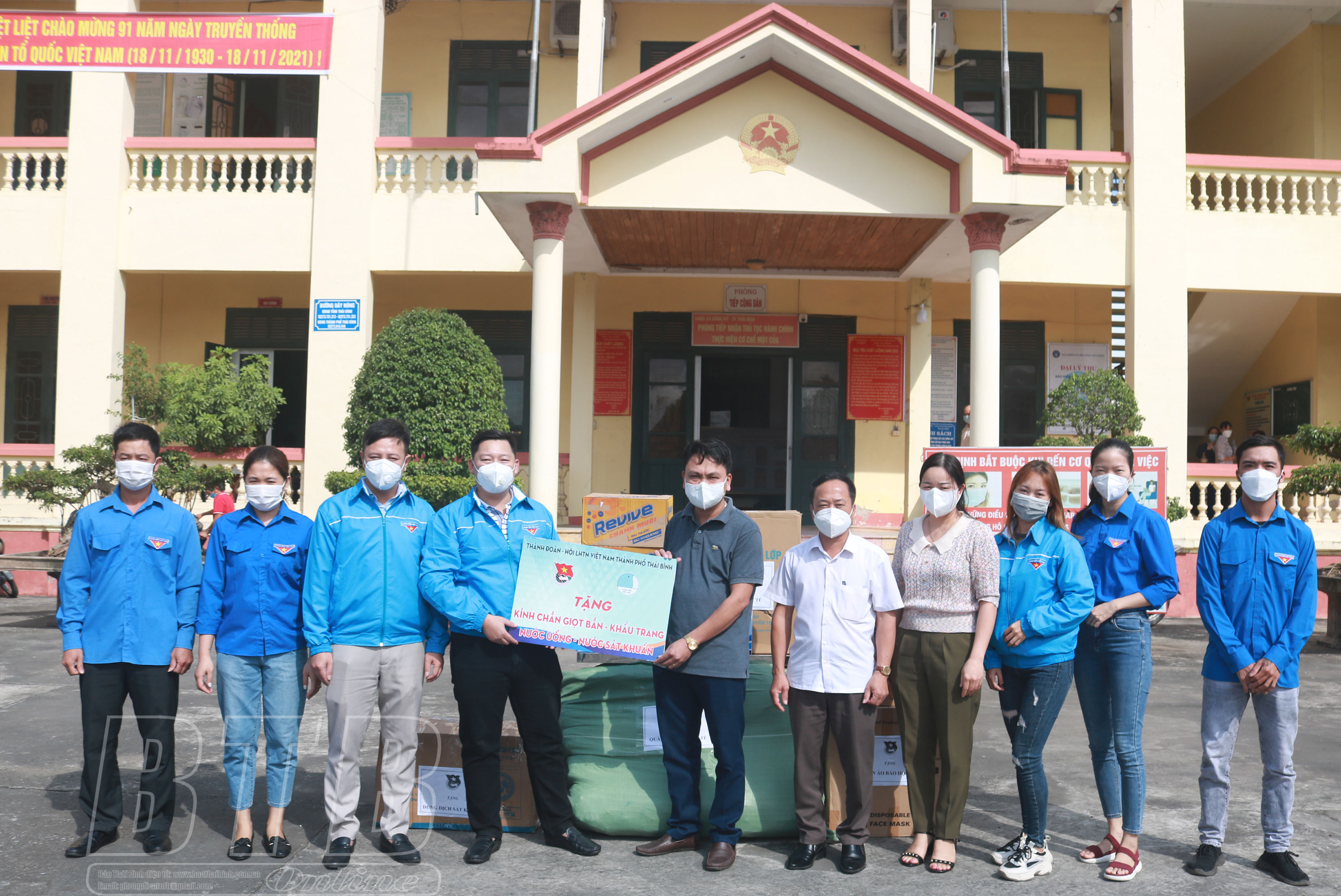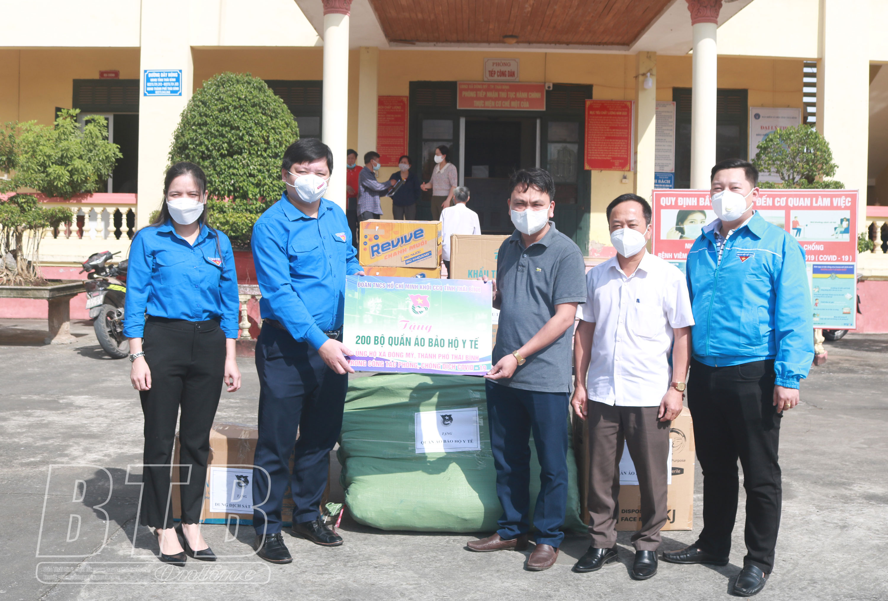 Nhân dịp này, Đoàn Thanh niên Khối các cơ quan tỉnh đã trao tặng 200 bộ quần áo bảo hộ y tế; Thành đoàn Thái Bình trao tặng 5.000 khẩu trang, 100 chai nước sát khuẩn, 300 kính chắn giọt bắn và 10 thùng nước khoáng cho Ban Chỉ đạo phòng, chống dịch Covid-19 xã Đông Mỹ (thành phố Thái Bình).