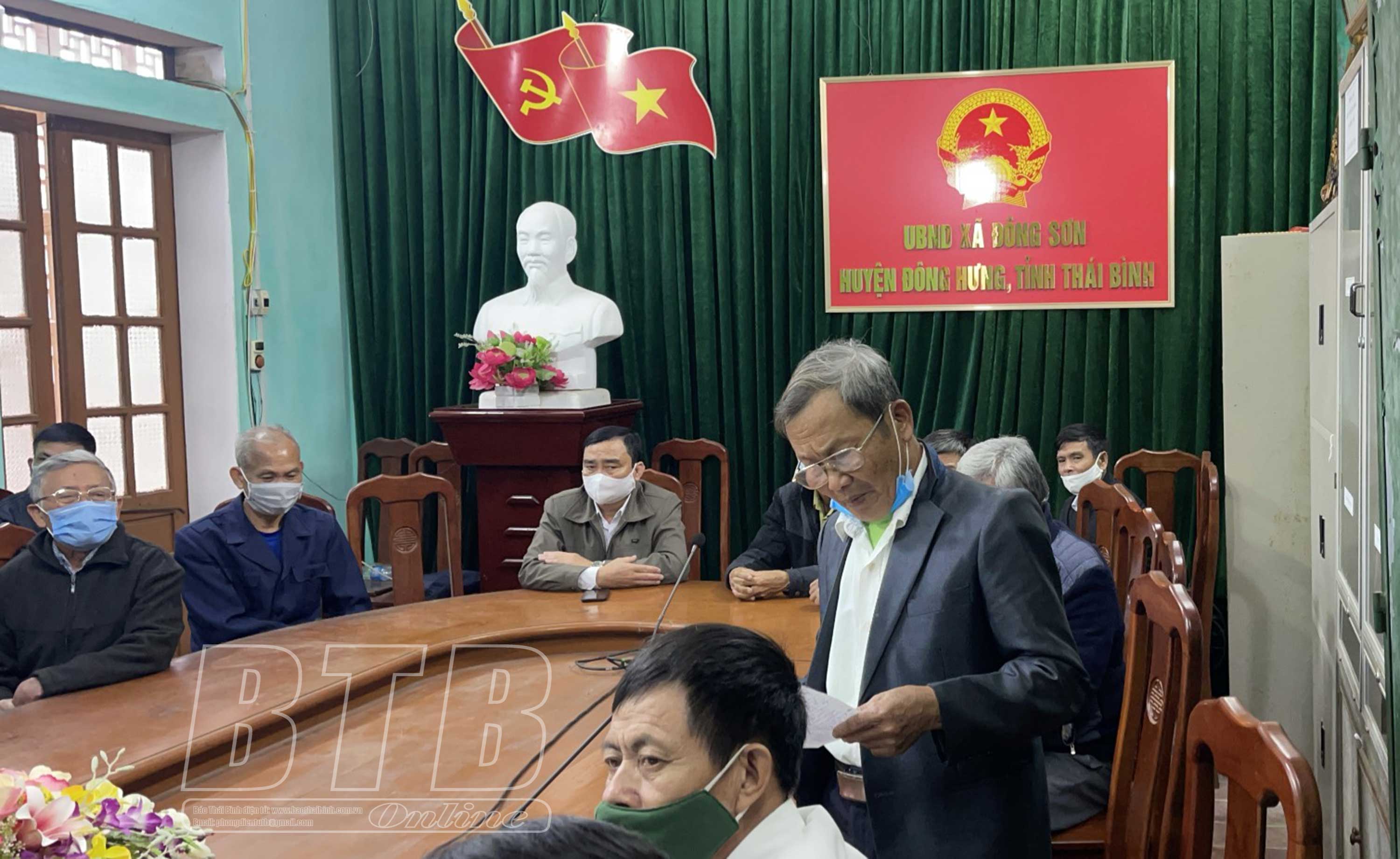 Cử tri xã Đông Sơn (Đông Hưng) phát biểu kiến nghị với đại biểu HĐND tỉnh, HĐND huyện. Ảnh: Đỗ Hiền