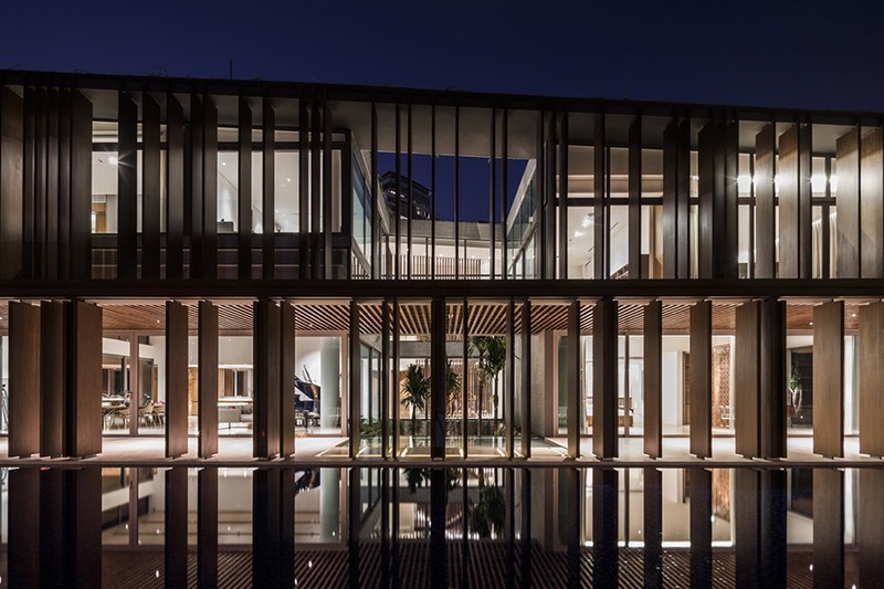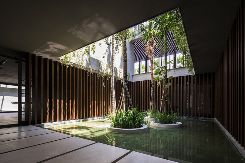 Mặt nước, ánh sáng và gió từ khoảng thông tầng giúp kết nối các không gian lại với nhau.