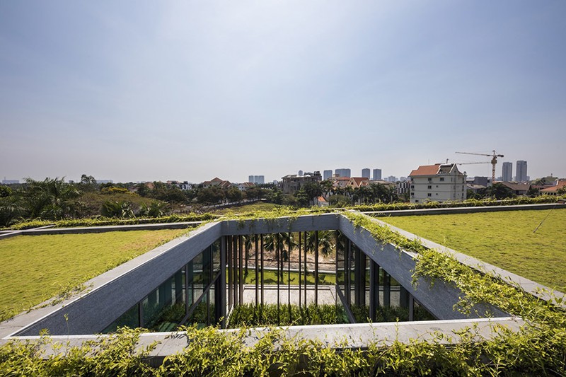 Mái của ngôi nhà cũng là một mảng xanh lớn.