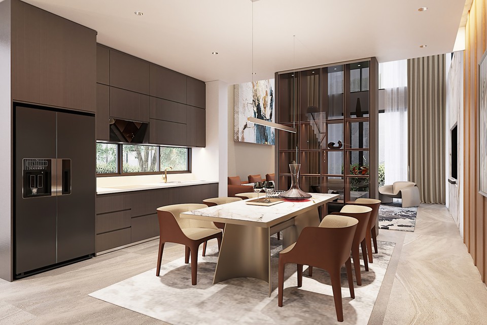 Hệ thống kính khổ lớn cao đến 7 m giúp tận dụng tối đa nguồn sáng tự nhiên, mang lại cho căn biệt thự vẻ đẹp tráng lệ, thanh thoát. Chủ nhân Regal Victoria có thể tận hưởng trọn vẹn tầm nhìn ra dòng kênh sinh thái và cảnh quan nội khu xanh mướt.