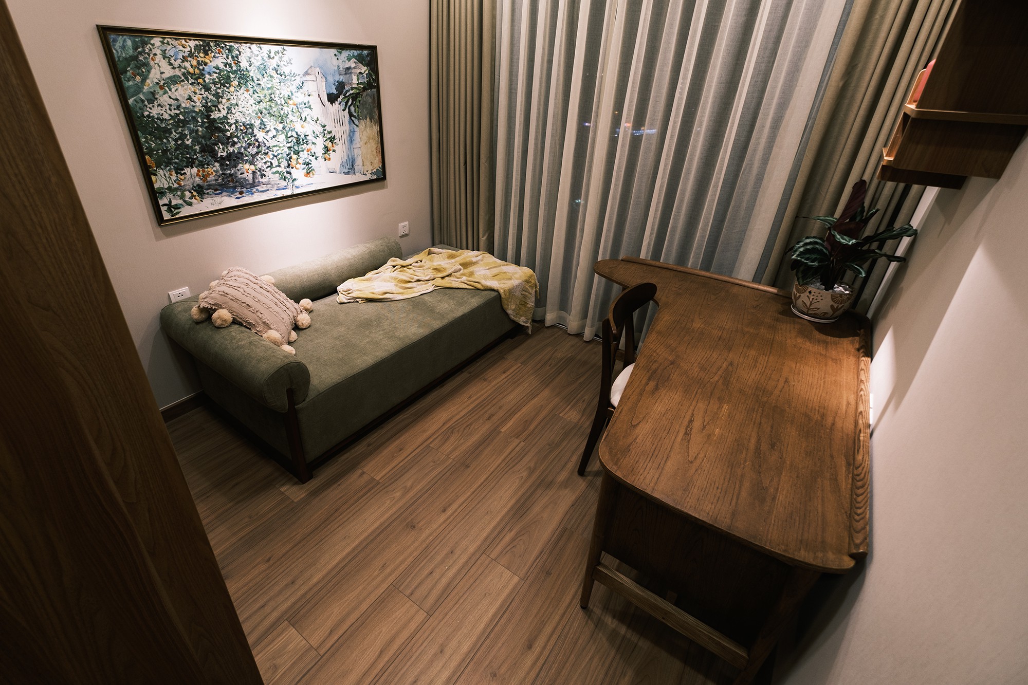 Phòng ngủ thứ 2 nay là nơi làm việc cho gia chủ. Gia chủ có thể sử dụng ghế sofa để nghỉ ngơi ngắn trong lúc làm việc.