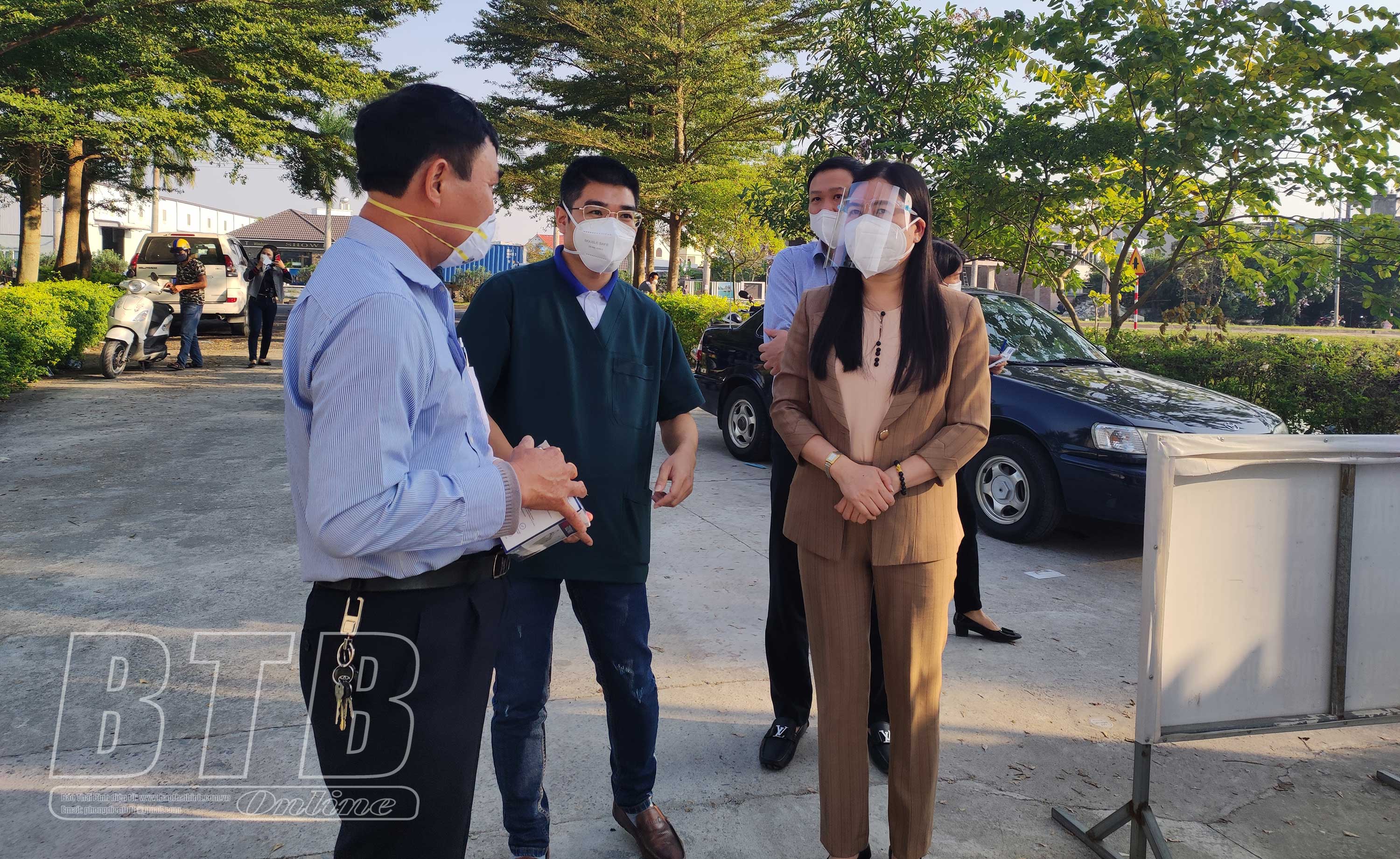 Đồng chí Trần Thị Bích Hằng, Tỉnh ủy viên, Phó Chủ tịch UBND tỉnh, Phó Trưởng ban thường trực Ban Chỉ đạo phòng, chống dịch Covid-19 tỉnh kiểm tra công tác phòng, chống dịch tại xã Đông Á (Đông Hưng).