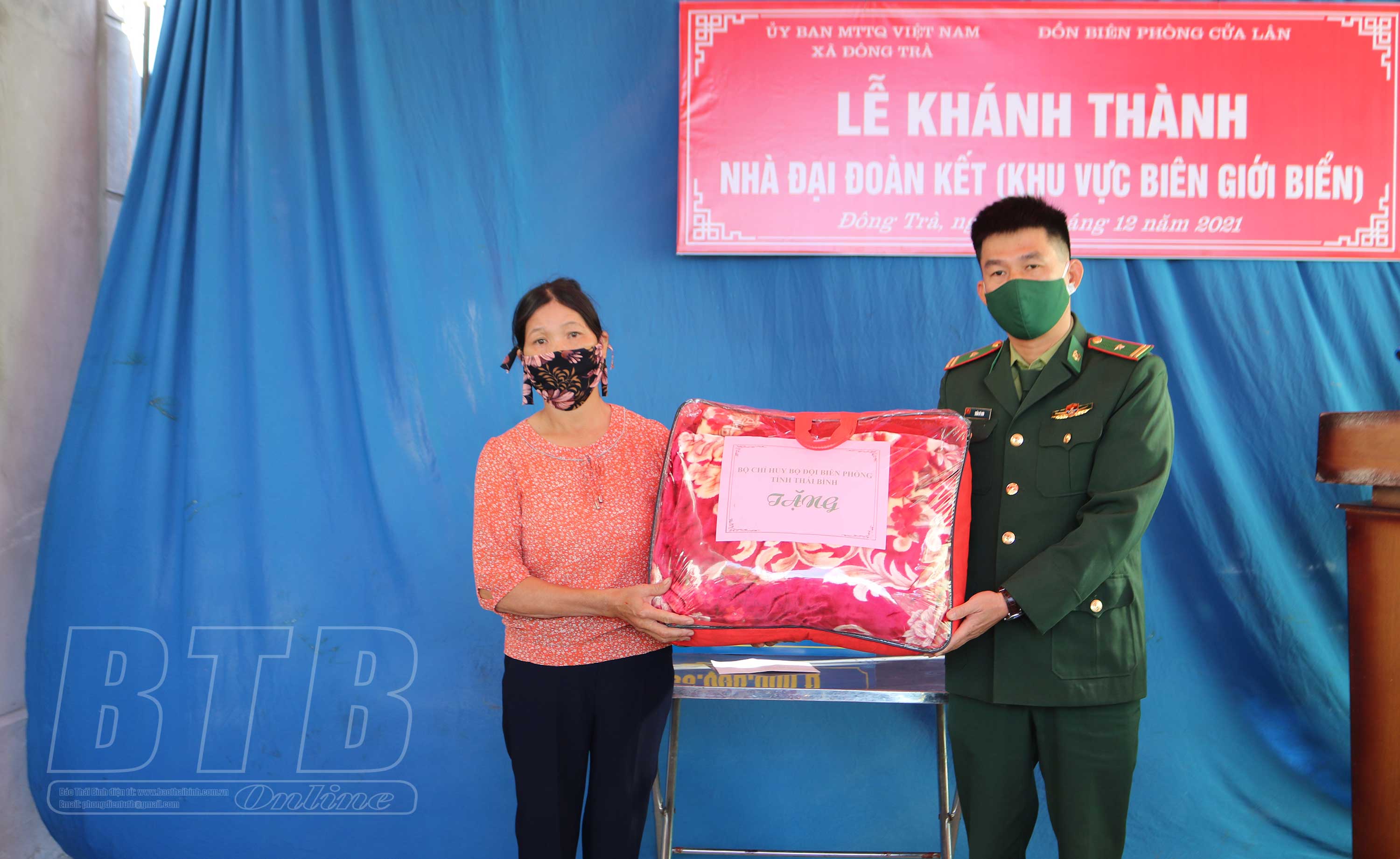 Ngôi nhà có diện tích 50m2, tổng kinh phí xây dựng 120 triệu đồng được trao cho gia đình bà Nguyễn Thị Là, thôn Định Cư Tây, xã Đông Trà (Tiền Hải). Ngoài số tiền 30 triệu đồng trích từ Quỹ "Vì người nghèo" do Ủy ban MTTQ tỉnh hỗ trợ, Bộ đội Biên phòng đã phối hợp với các ban, ngành, đoàn thể và nhân dân địa phương quyên góp, ủng hộ gia đình kinh phí, nguyên vật liệu xây dựng, vật dụng sinh hoạt cùng gần 100 ngày công.
