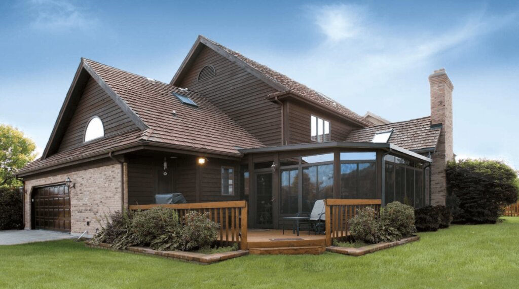 Phong cách thiết kế nhà mái Thái pha trộn chút kiến trúc Pháp luôn mang đến cảm giác lãng mạn và bình yên. Tông màu trầm bao phủ gần như toàn bộ công trình nhưng lại được làm sáng lên bằng hệ thống cửa kính hiện đại. Bố cục mái so le tạo nên không gian mở cho bên trong nhà. Đặc biệt, phần tường ốp đá mang đến vẻ đẹp bình dị, mộc mạc như ở đồng quê nước Pháp. Nhà mái Thái cho diện tích nhỏ