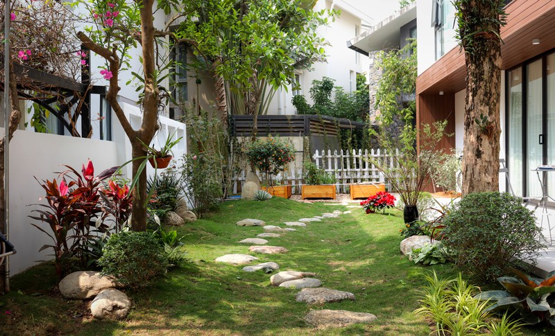 Đặc biệt, gia chủ thích có khoảng sân vườn, hồ cá, trồng rau và cây ăn quả nên bên cạnh nội thất bên trong, nhóm kiến trúc sư chú trọng đến thiết kế cảnh quan bên ngoài.