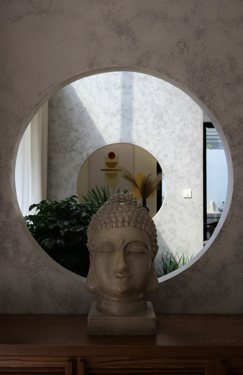 Hai ô tròn tại nơi thông tầng giúp thông gió và tạo điểm nhấn nho nhỏ.