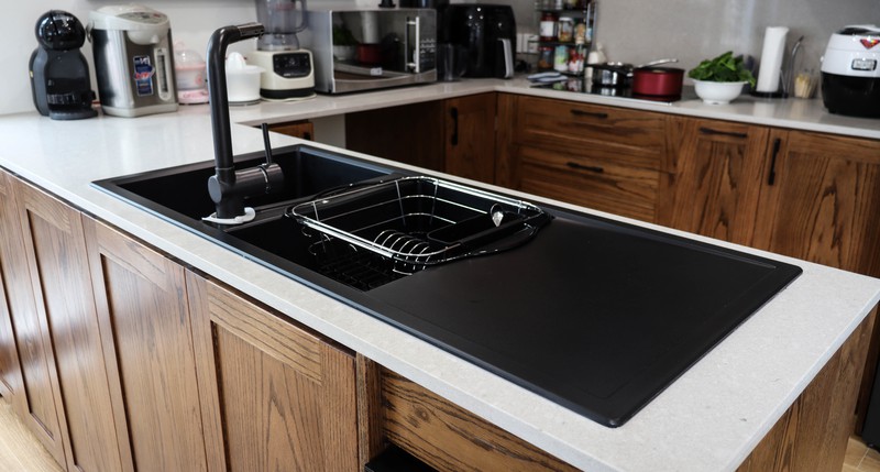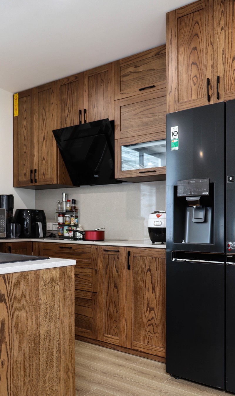Bếp hình chữ U, thuận tiện cho gia chủ khi chế biến món ăn với bồn rửa không dựa vào tường như các thiết kế thường thấy