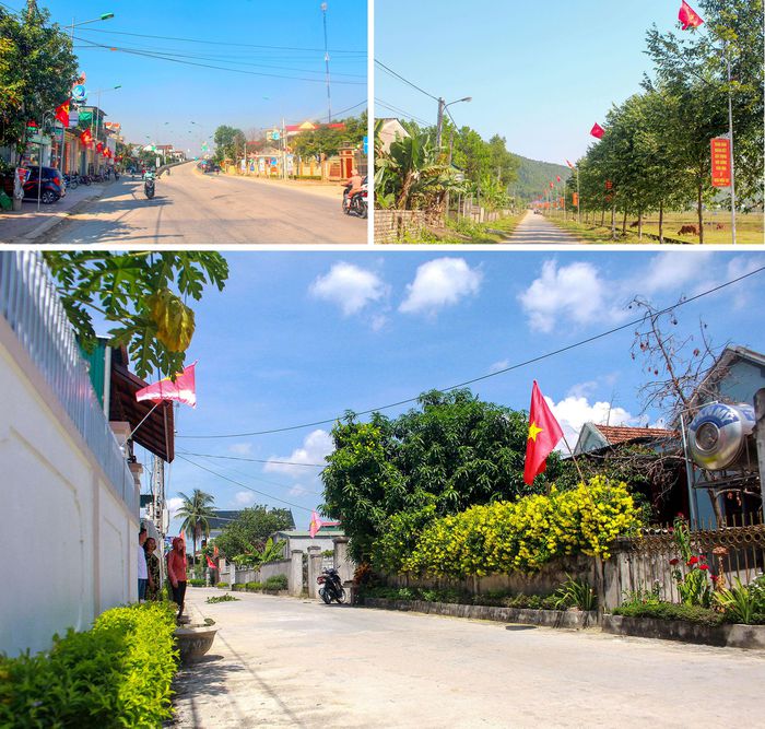 Quang cảnh thị trấn Cầu Giát (Quỳnh Lưu); Mô hình đường hoa, đường cờ xanh, sạch, đẹp ở xã NTM kiểu mẫu Quỳnh Đôi (Quỳnh Lưu). Ảnh: Thu Hương