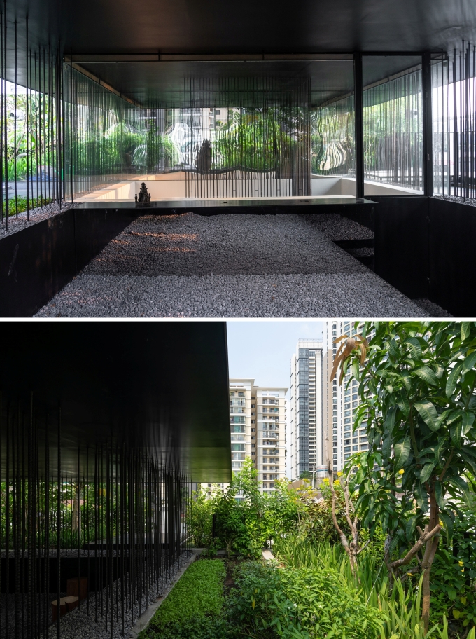 Khu thờ của Sky House được bao quanh bởi vườn rau và cây xanh. Ảnh: Triệu Chiến/MIA Design Studio