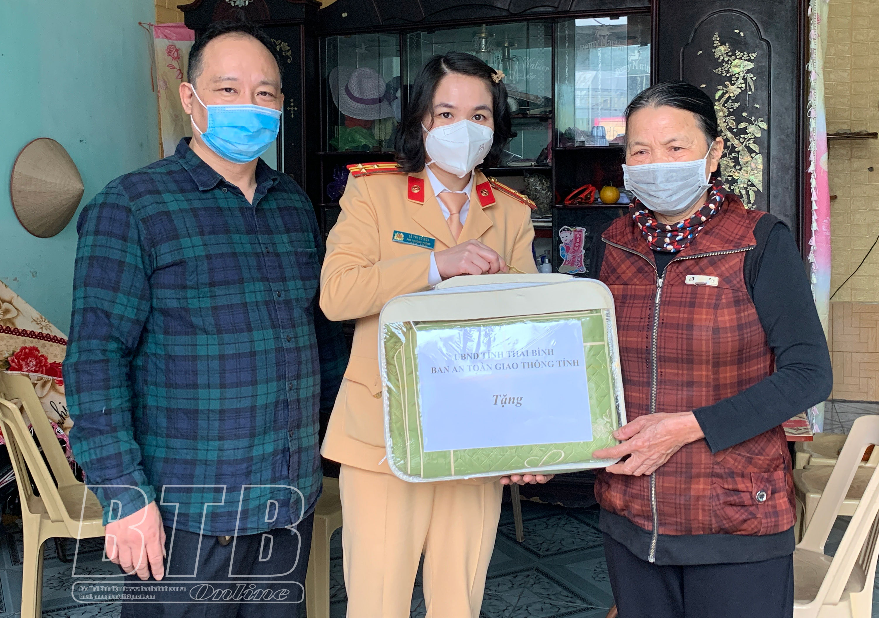 Tại Thái Thụy, đại diện Ban ATGT tỉnh, Ban ATGT huyện đã đến thăm hỏi, tặng quà bà Bùi Thị Xuân trú tại xã Thụy Xuân (Thái Thụy) là bà nội của nạn nhân Nguyễn Thị Thùy Dung, sinh năm 2005, bị tai nạn giao thông thiệt mạng năm 2020; bà Nguyễn Thị Bé, trú tại tổ Hổ Đội 1, thị trấn Diêm Điền,Thái Thụy, (vợ của nạn nhân Lê Xuân Khiêm bị tai nạn thiệt mạng năm 2020).