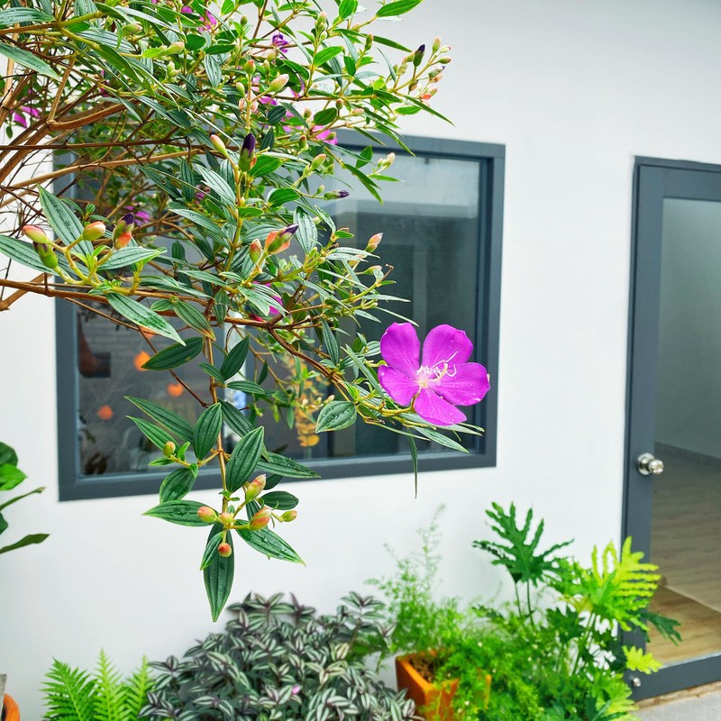 Quanh nhà rợp cây xanh, hoa thơm nhờ bàn tay khéo léo của gia chủ.