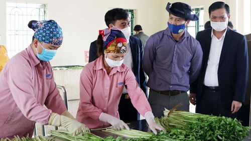 Đoàn công tác thăm mô hình sơ chế rau cần tại xã Hoàng Lương.