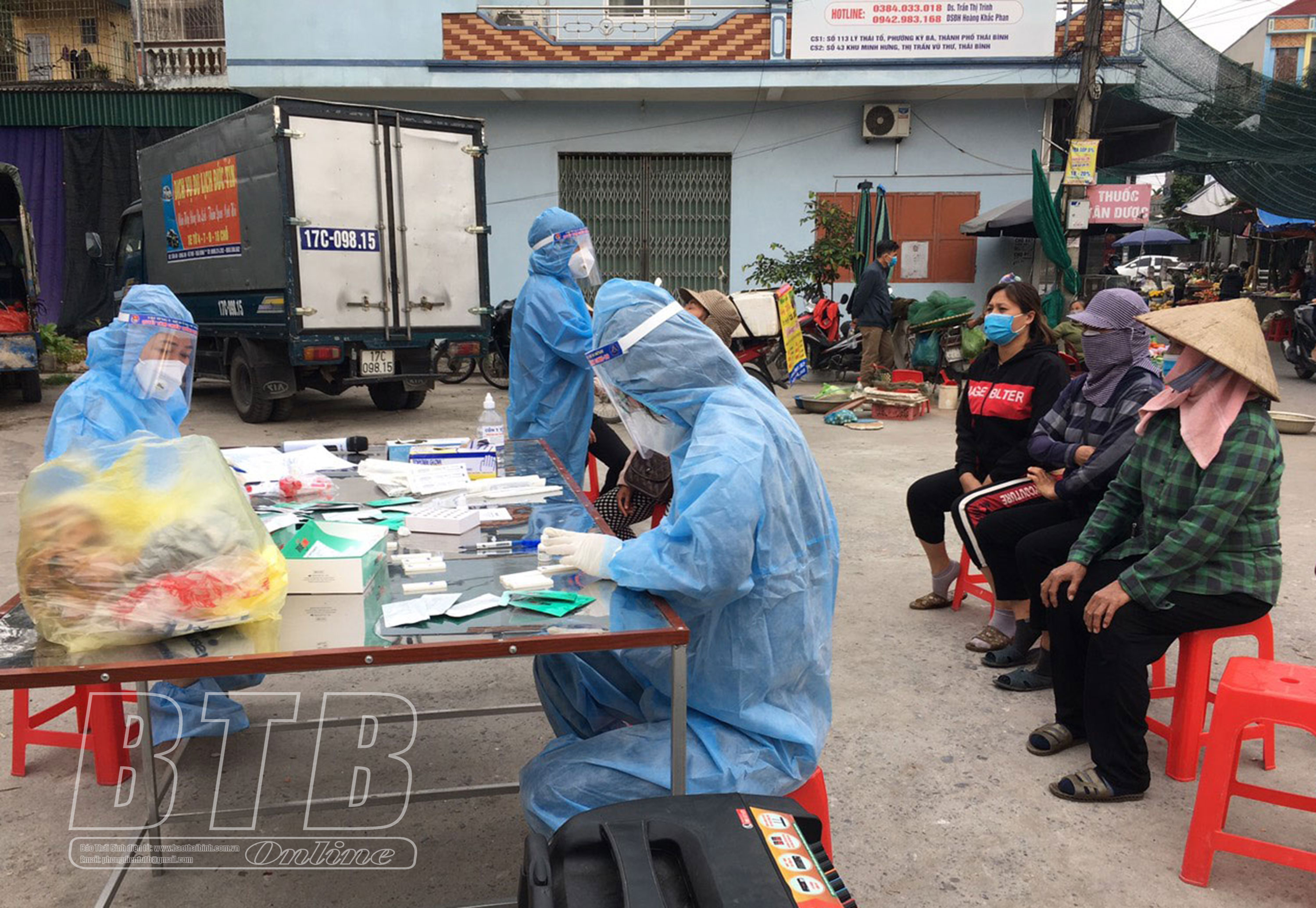 Thị trấn Vũ Thư vẫn duy trì test trọng điểm định kỳ cho người dân buôn bán tại chợ Thẫm để sàng lọc, bóc tách F0 nhanh nhất.